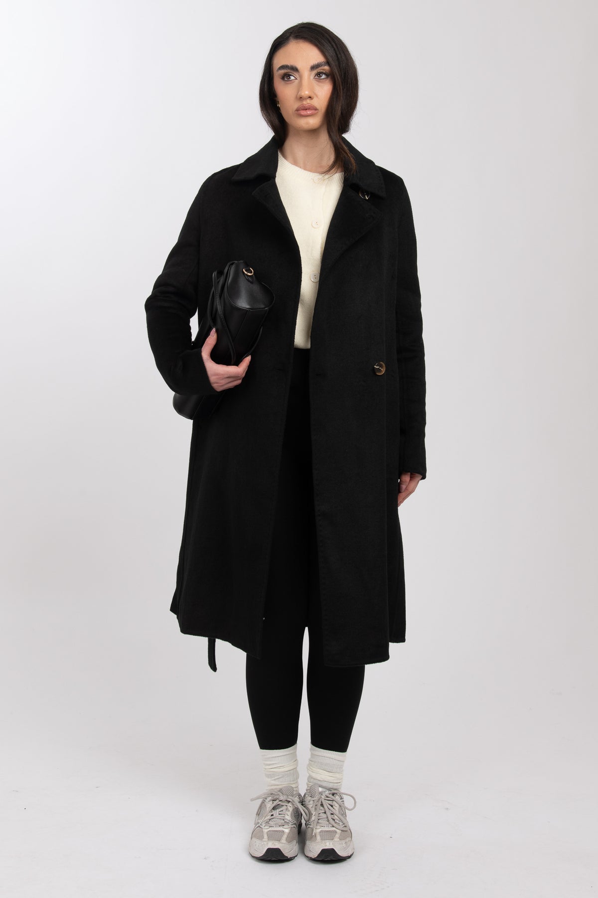 Cappotto ‘CAVALLINO’ con impunture Nero