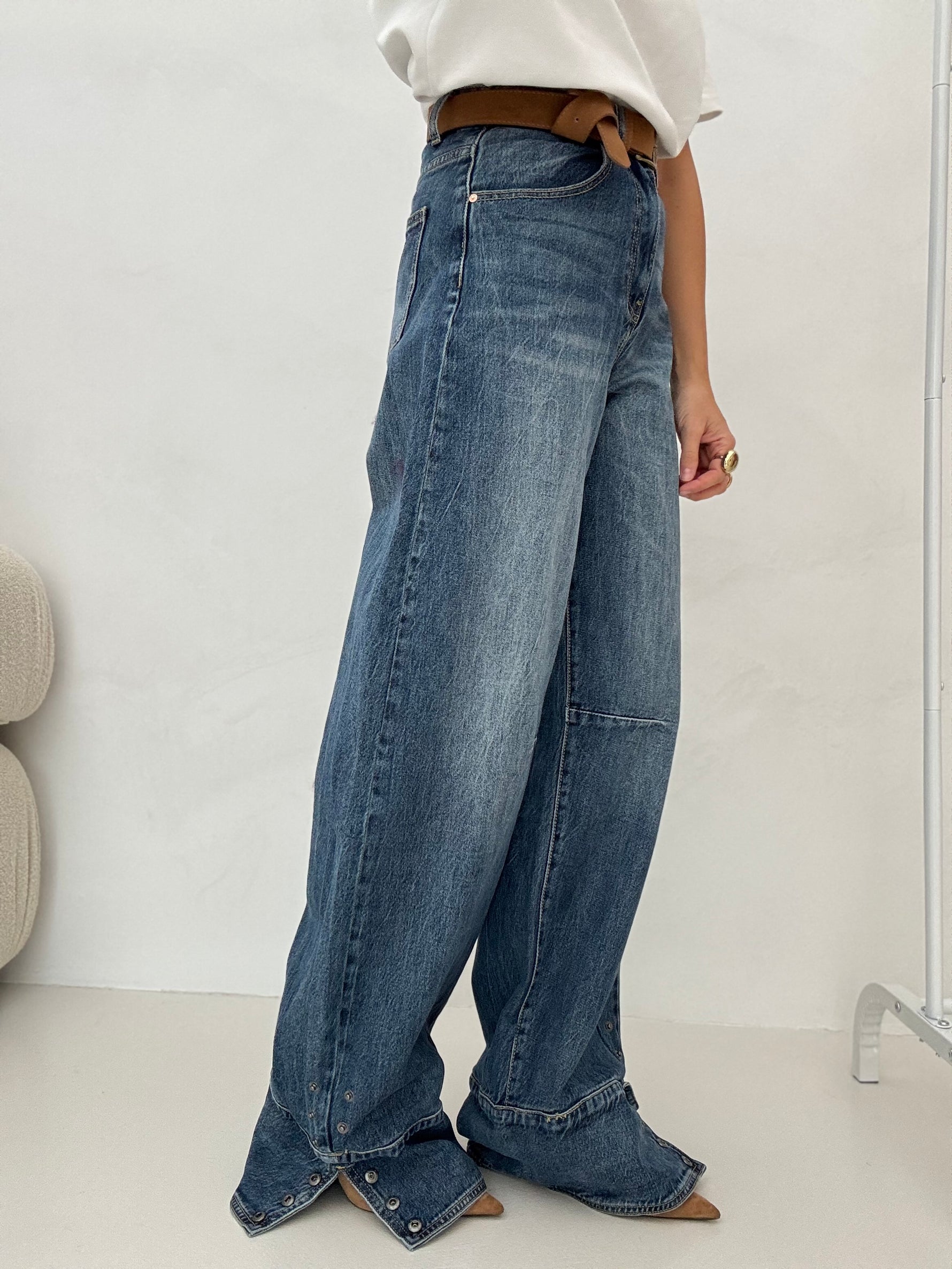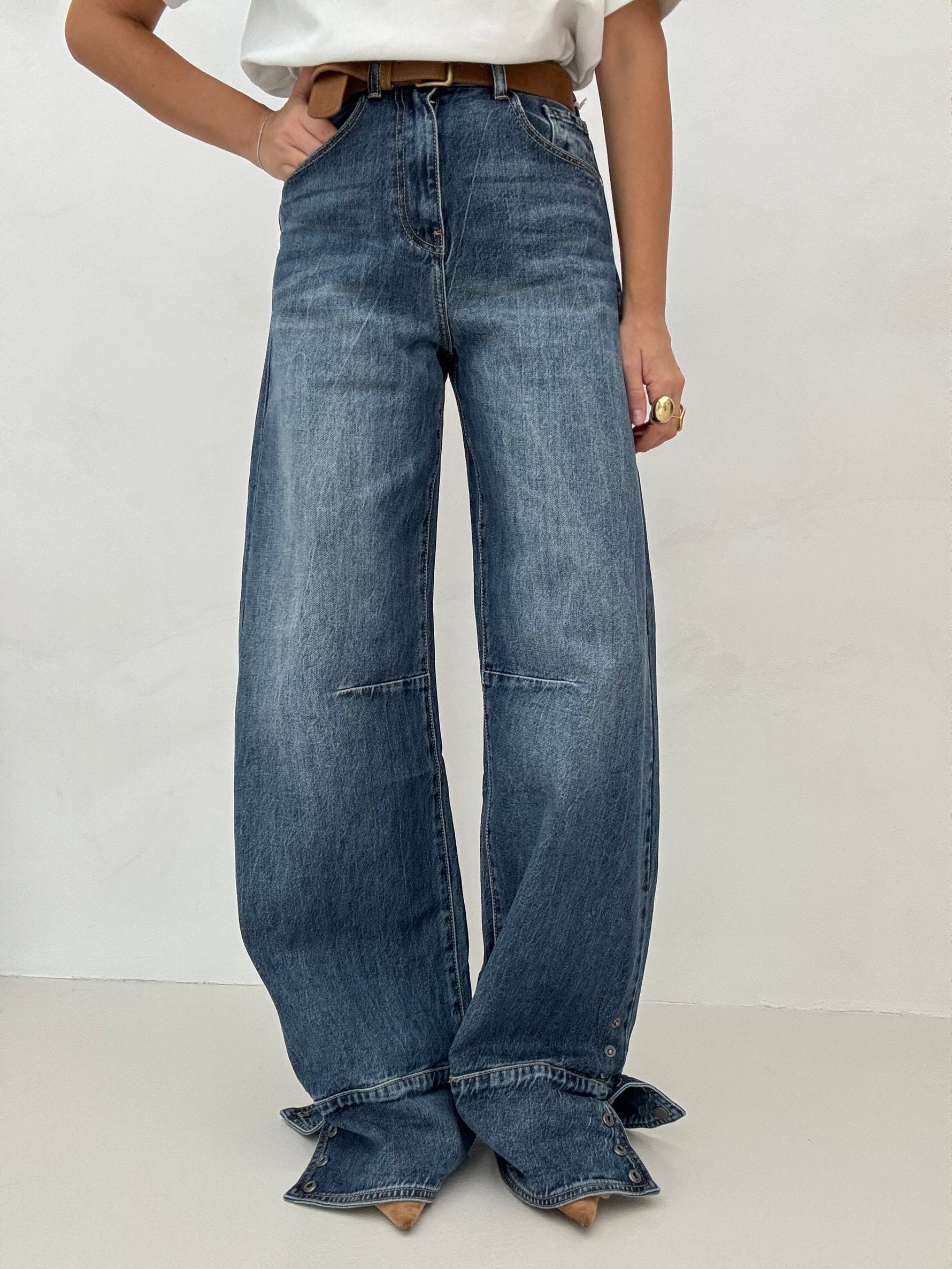 Jeans ‘BAGGY’ piegone con bottoncini Denim Scuro