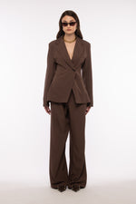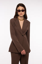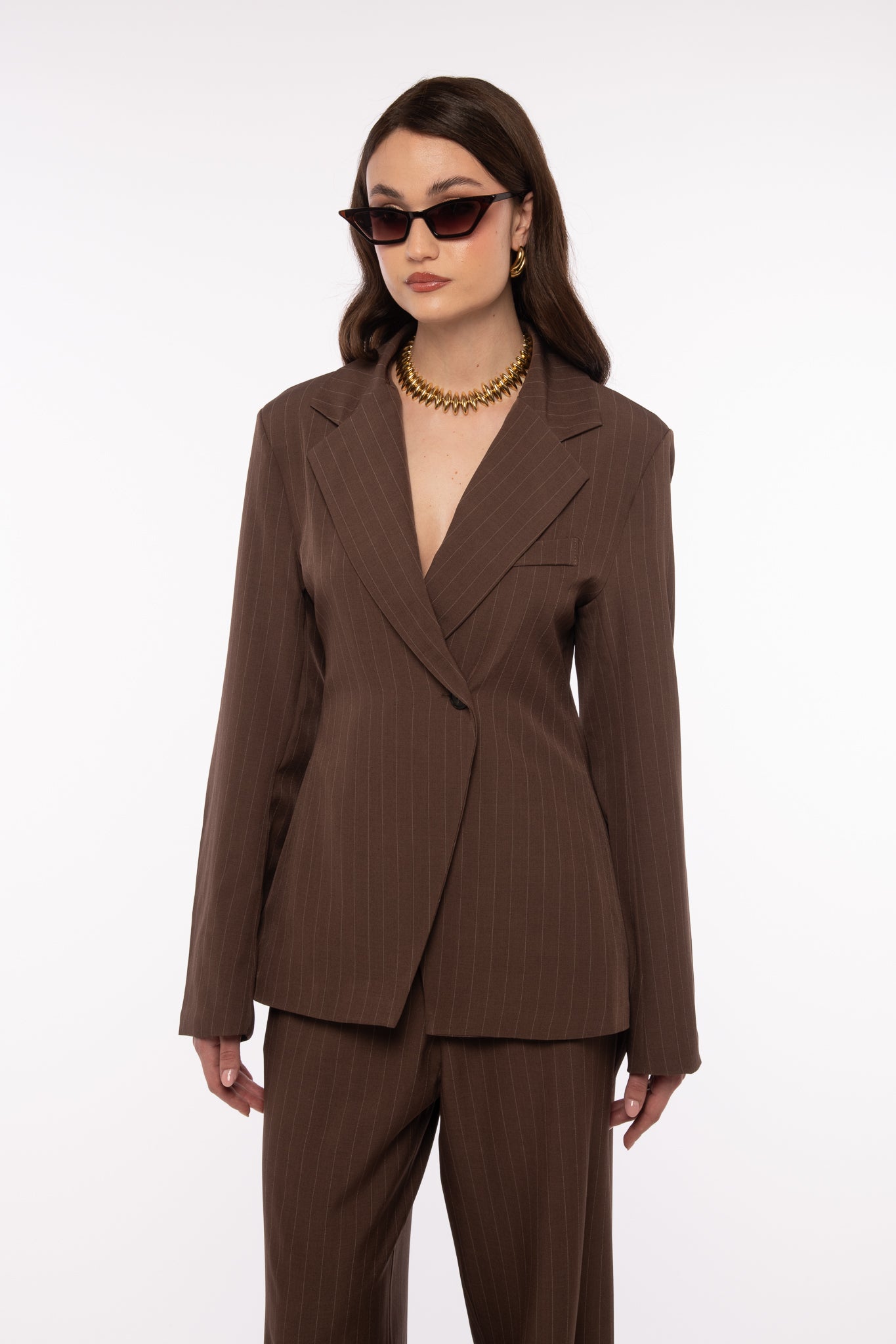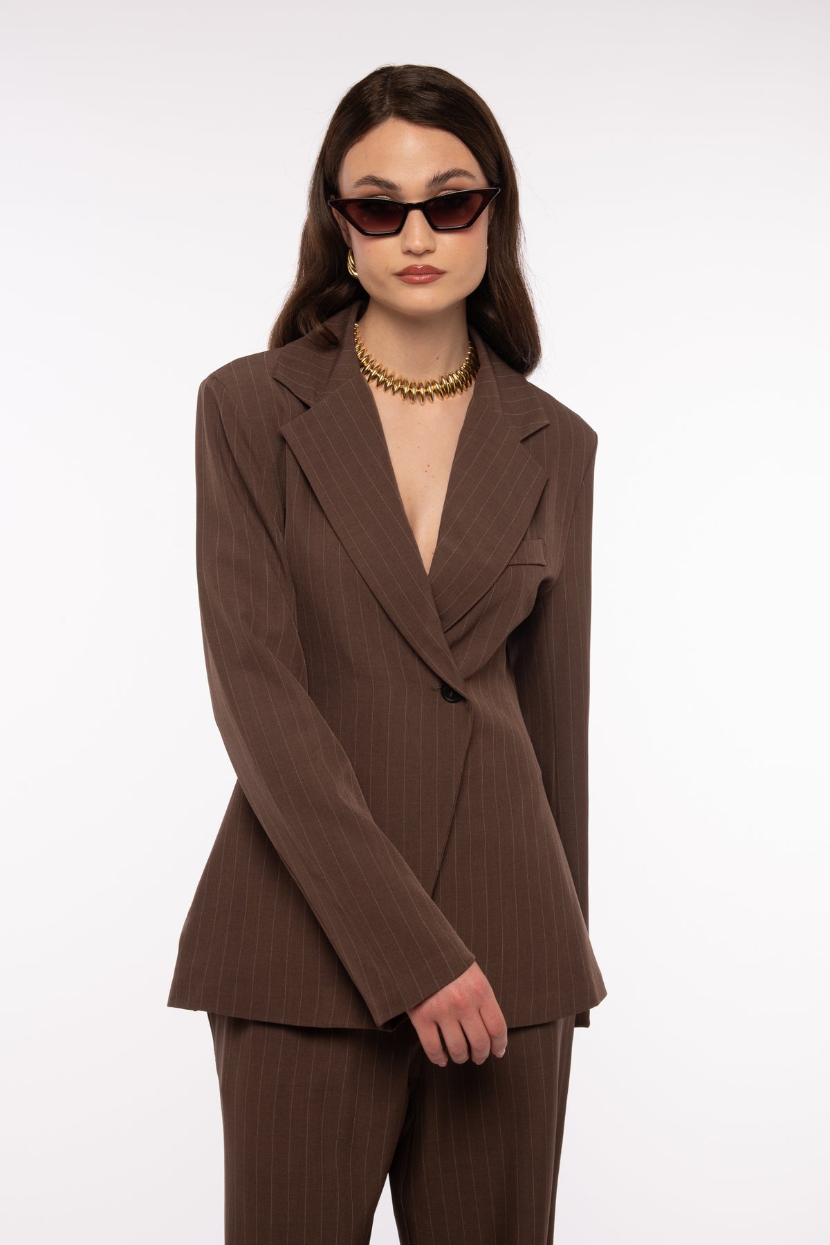 Blazer lunghezza regolare , foderato internamente, chiusura con bottone sul davanti e taschino finto sul petto, spalline interne.
