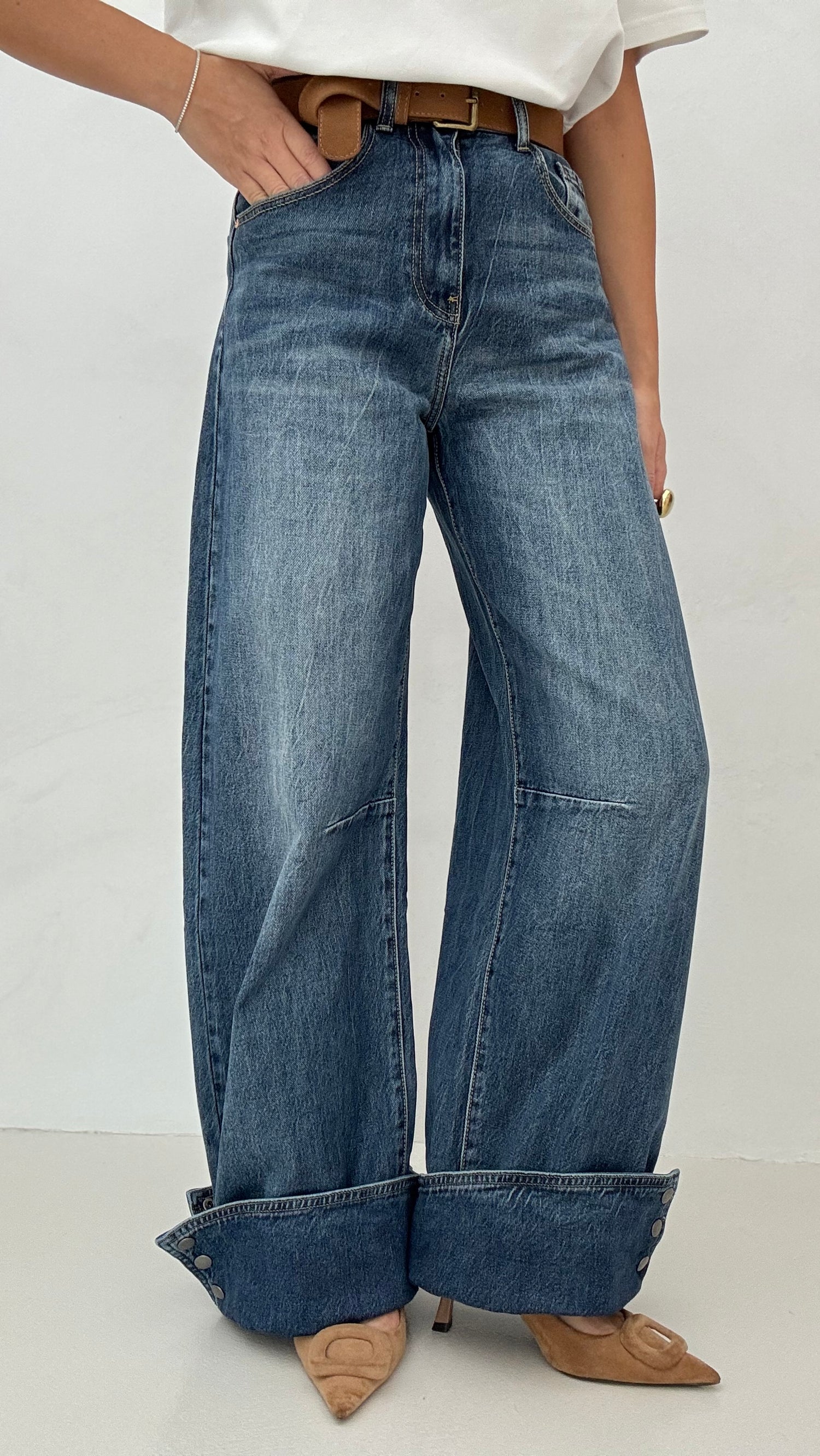 Jeans ‘BAGGY’ piegone con bottoncini Denim Scuro