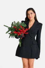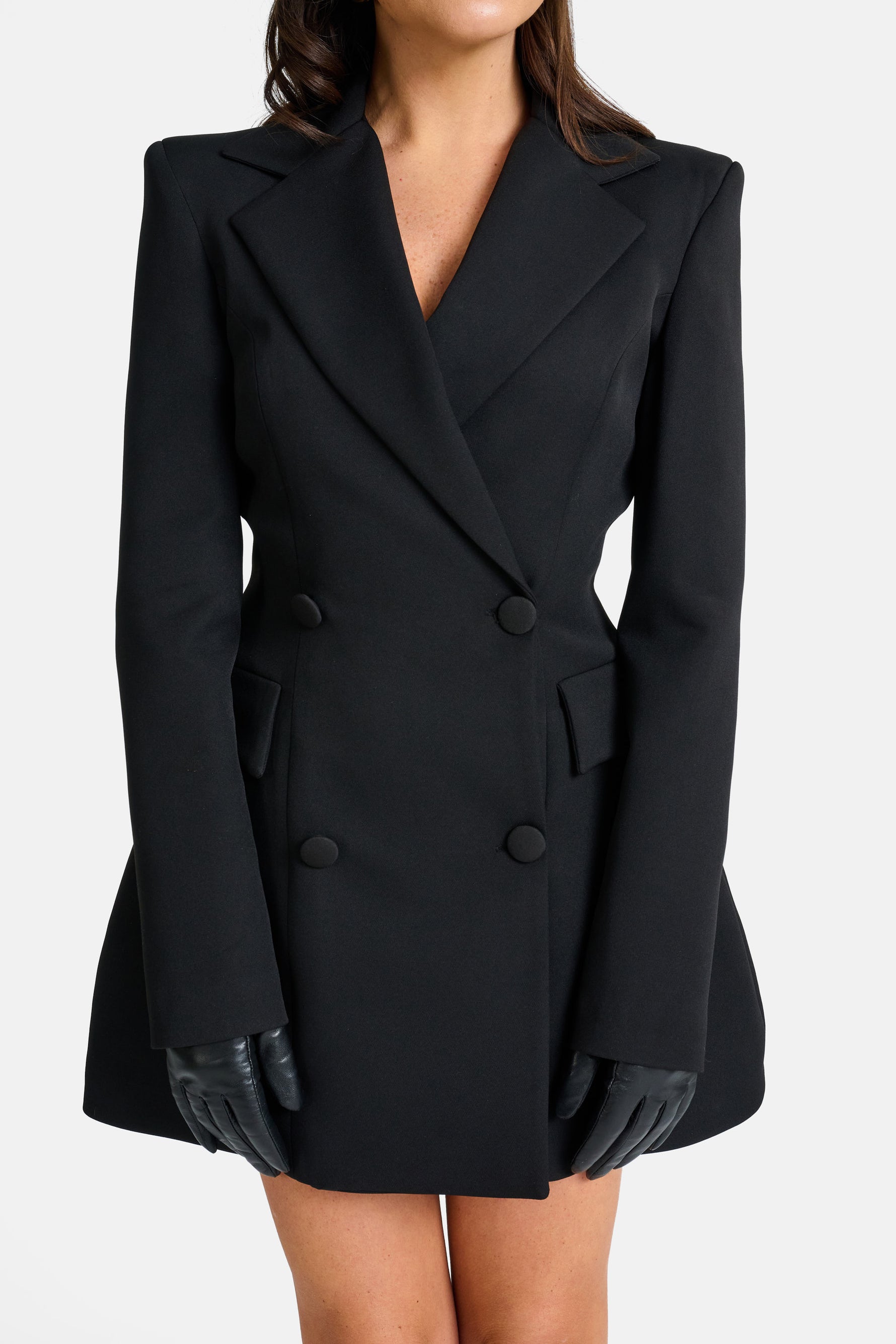 Abito/Giacca con chiusura doppio petto, spalline interne e tasche finte sul davanti, effetto avvitato.