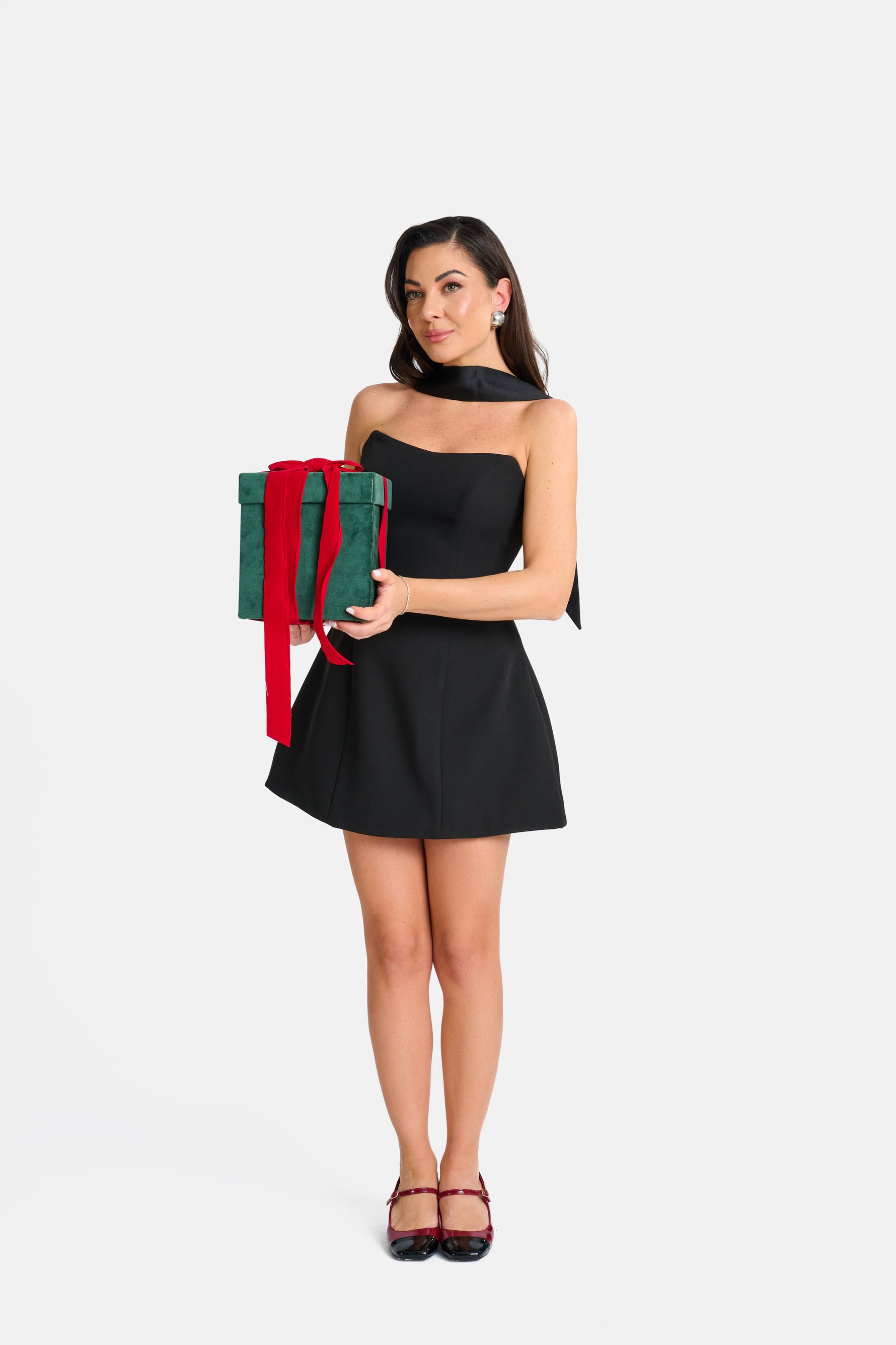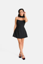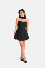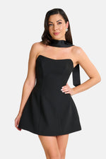 Abito con chiusura zip sul retro, non elasticizzato, scollo a cuore internamente steccato, effetto avvitato, interamente foderato.