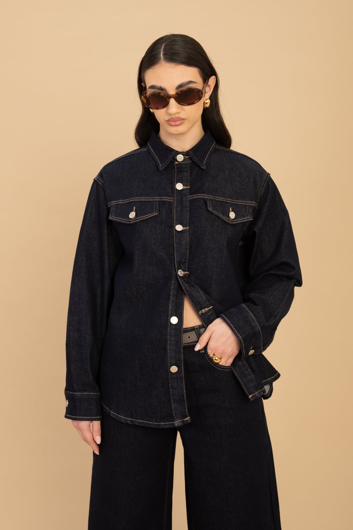 Prezzo unitario perLa modella indossa taglia S ed è alta 1,69. La camicia è lunghezza regolare , chiusura bottoni , tasche sul petto vere , leggermente elasticizzato, veste regolare.