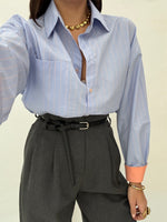 Camicia ‘100% COTONE’ Azzurra Righe Arancio