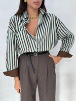 Camicia ‘100% COTONE’ Righe Verde e Cacao
