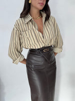 Robi è alta 1.63, solitamente indossa taglia XS, la camicia è taglia unica, lunghezza regolare, veste fino a taglia L, foderata internamente. Taschino sul petto vero. Chiusura con bottoncini