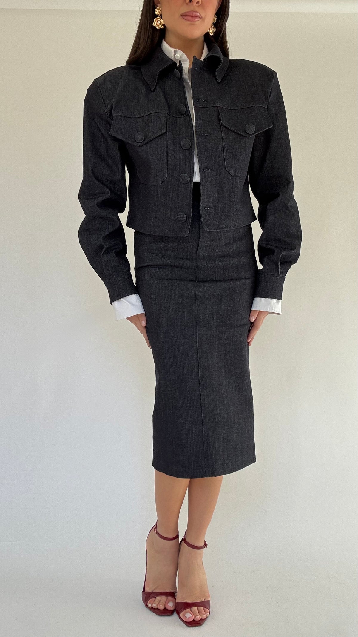 Giacca con vestibilità regolare, per un effetto più morbido e over consigliamo una taglia in più, chiusura con bottoni rivestiti,leggermente elasticizzata, lunghezza leggermente crop, tasche vere sul davanti, internamente non è foderata.