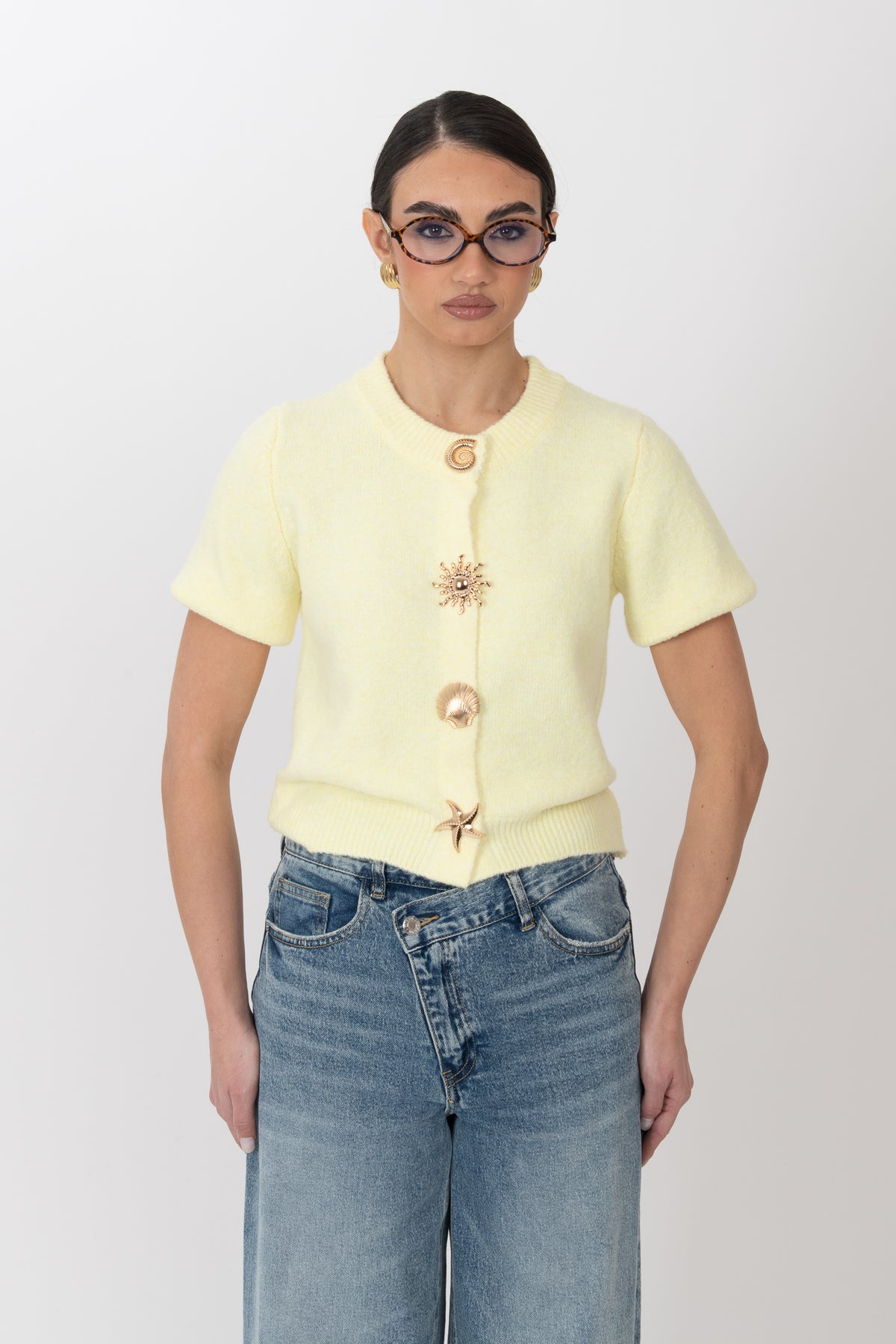 Cardigan ‘BOTTONI CONCHIGLIA 6%LANA’ Giallo