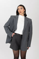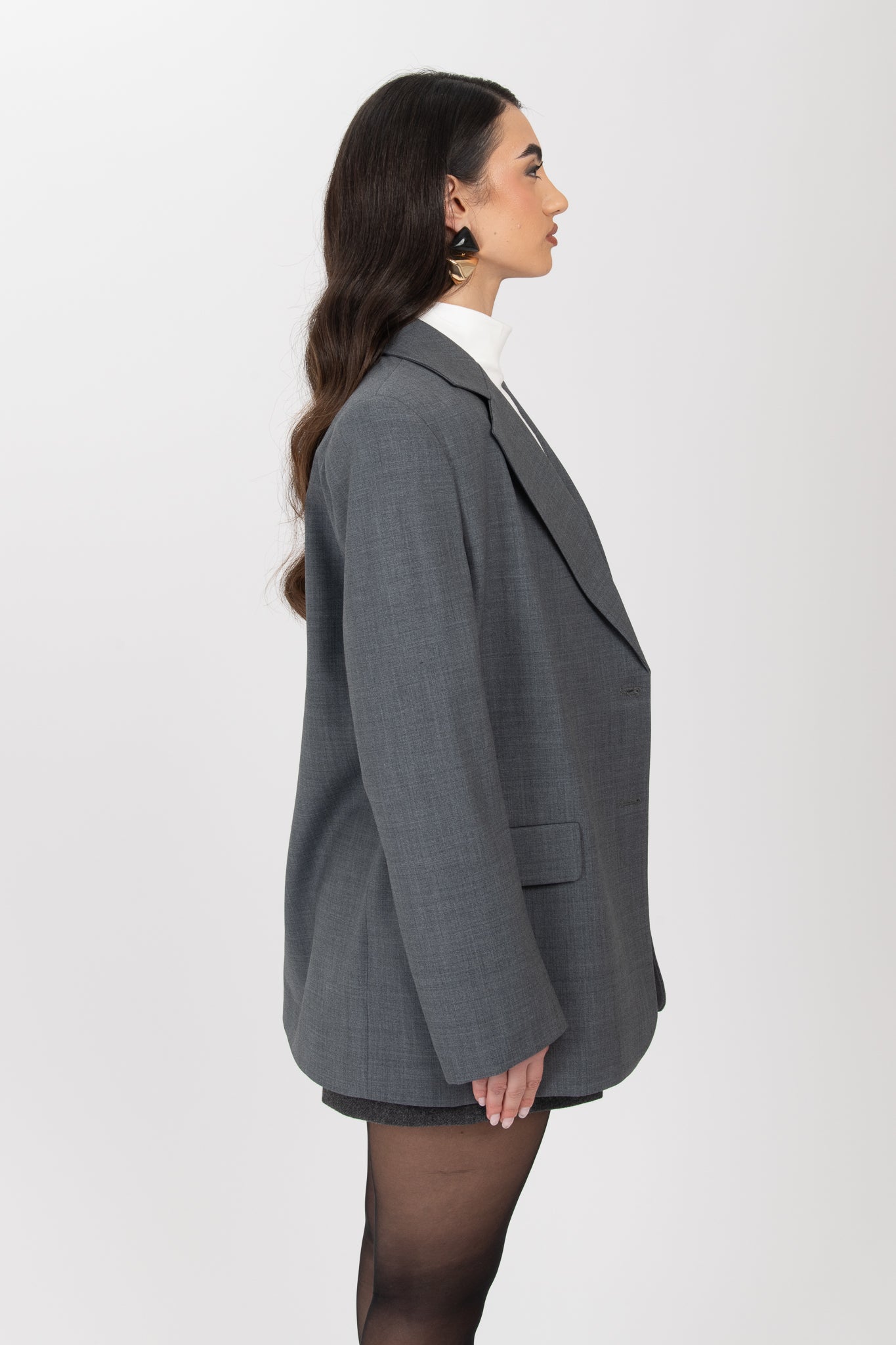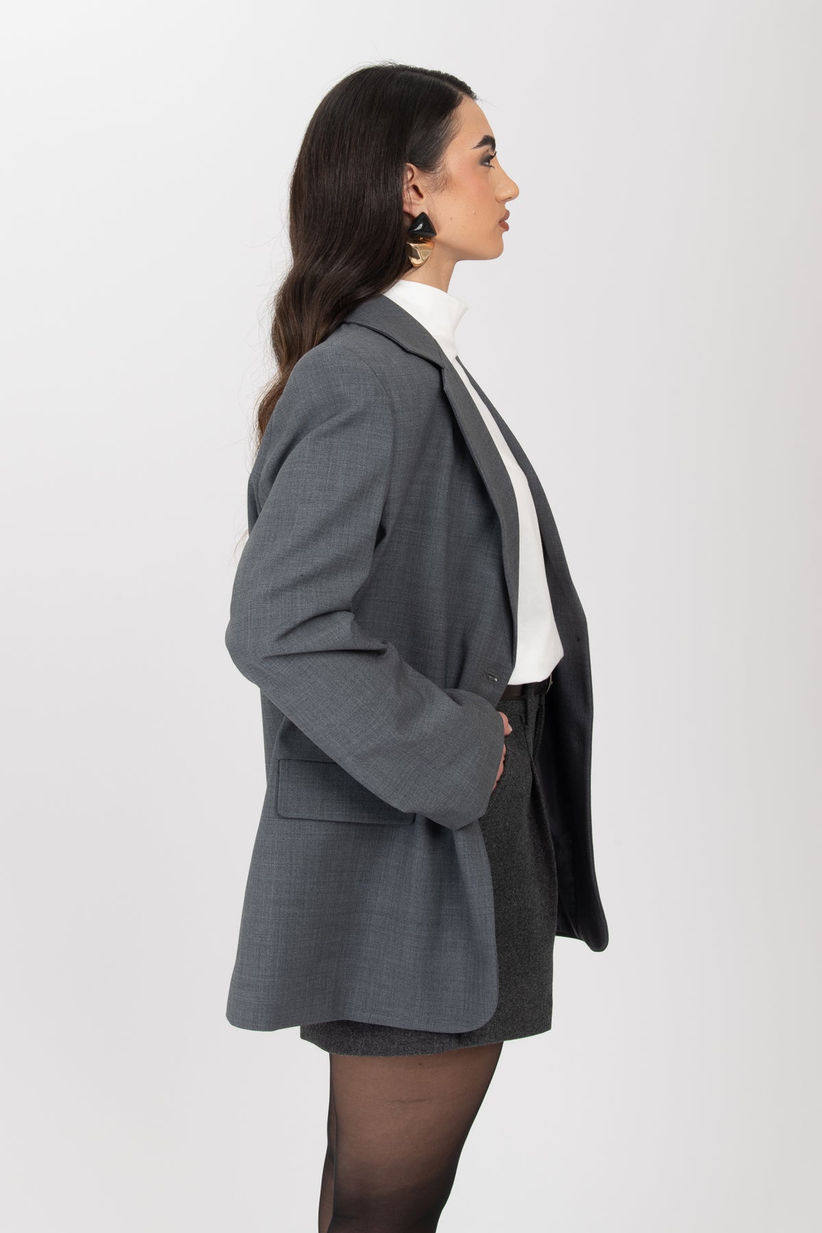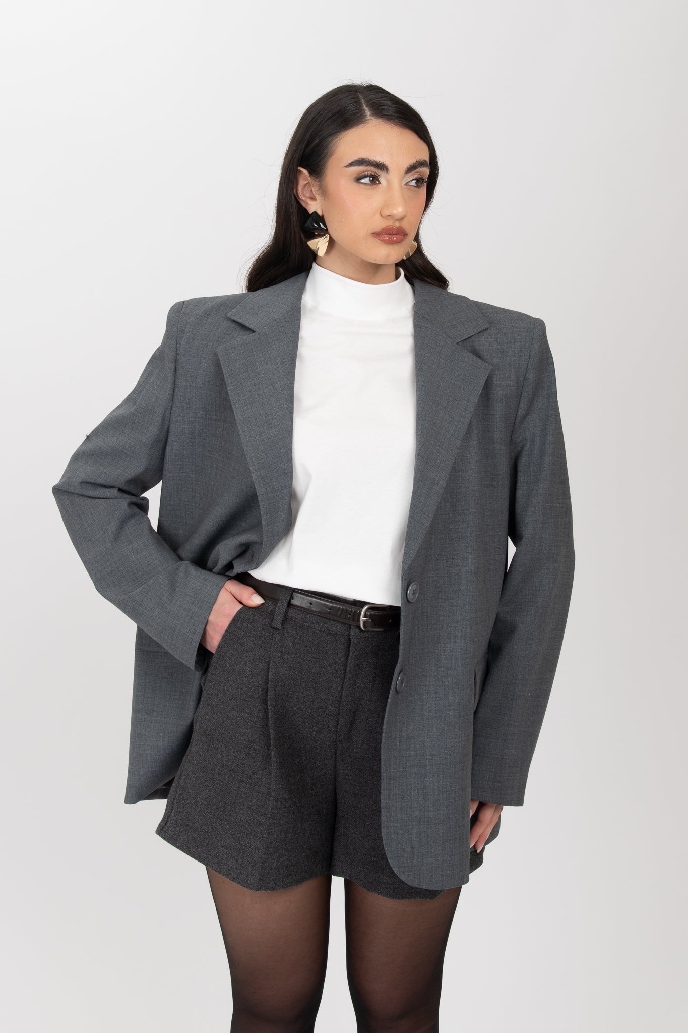 Blazer con spalline interne, tasche finte, due bottoni veri, vestibilità oversize, foderato internamente, nom elasticizzato .