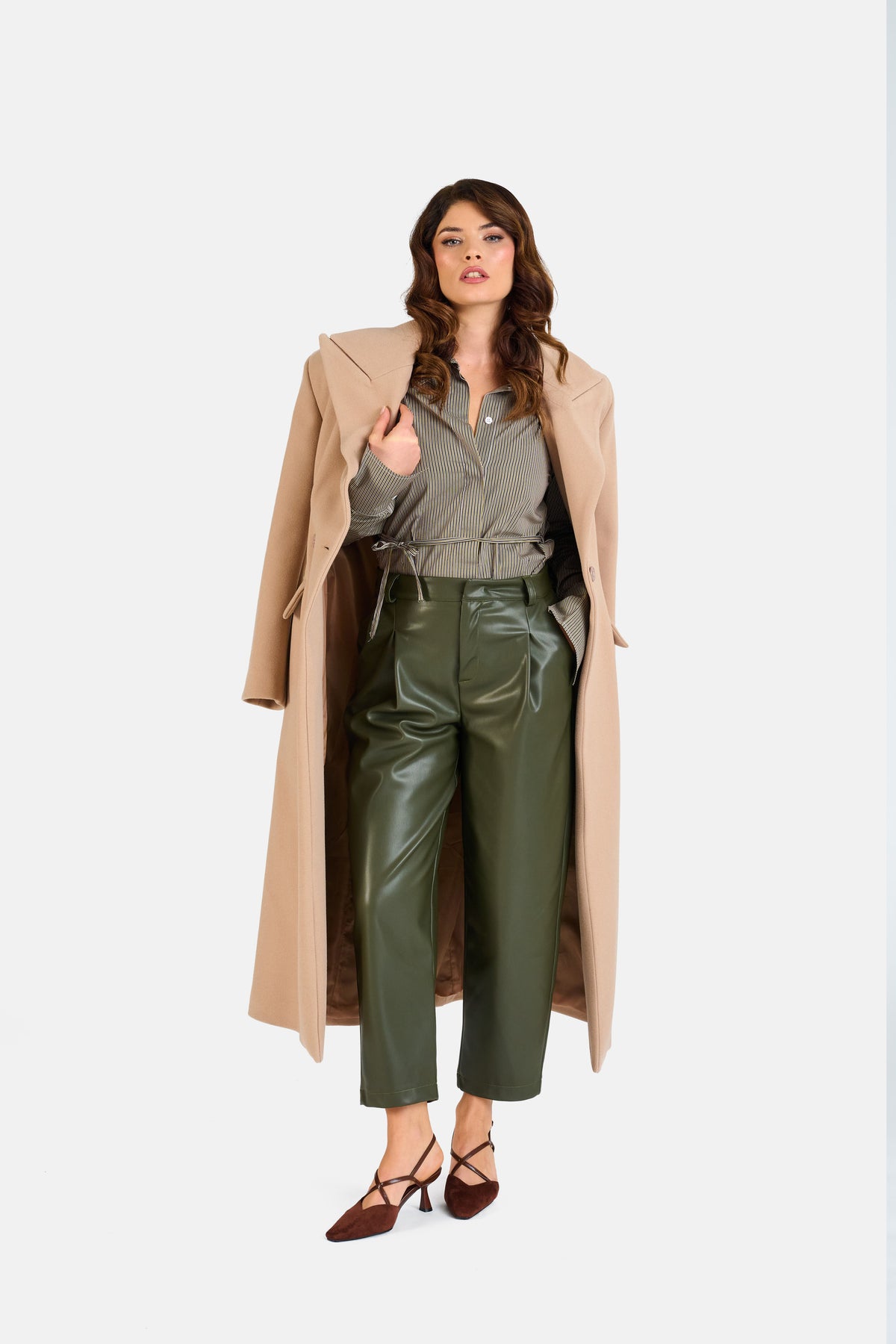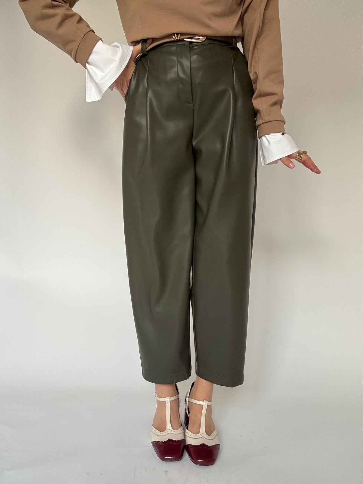 Pantalone ecopelle ‘3&33’ Verde Militare