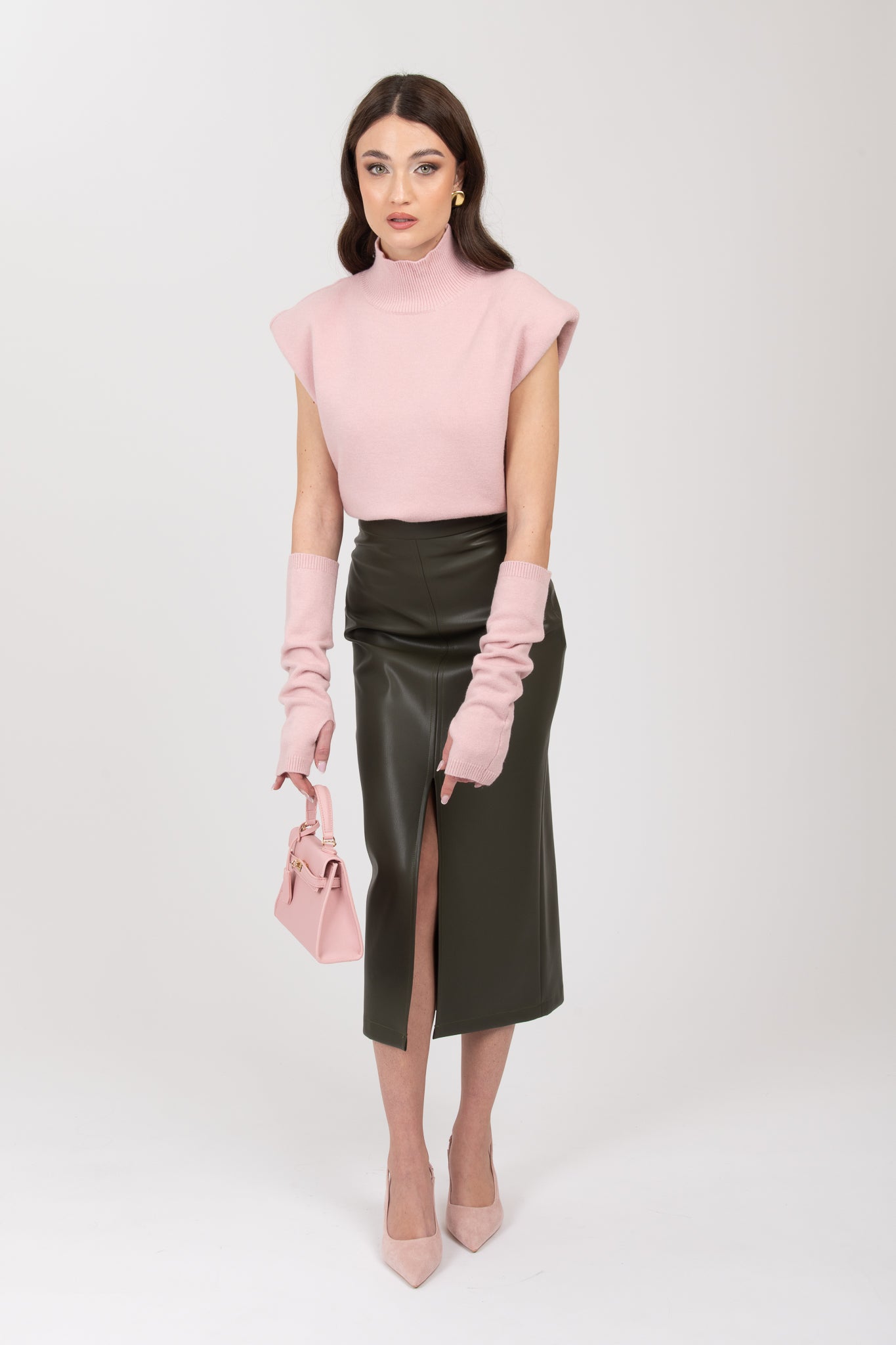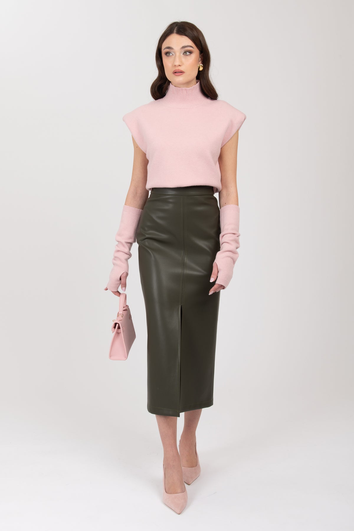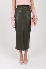 Gonna longuette ecopelle ‘3&33’ Verde Militare