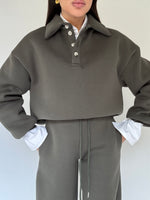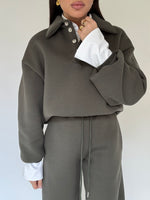Robi è alta 1.63, solitamente indossa taglia XS, della felpa indossa taglia S/M, la differenza tra le taglie è minima, PILE INTERNO, bottoni veri, lunghezza regolare.