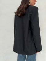 Blazer con spalline interne, tasche finte, due bottoni veri, vestibilità oversize, foderato internamente, nom elasticizzato .