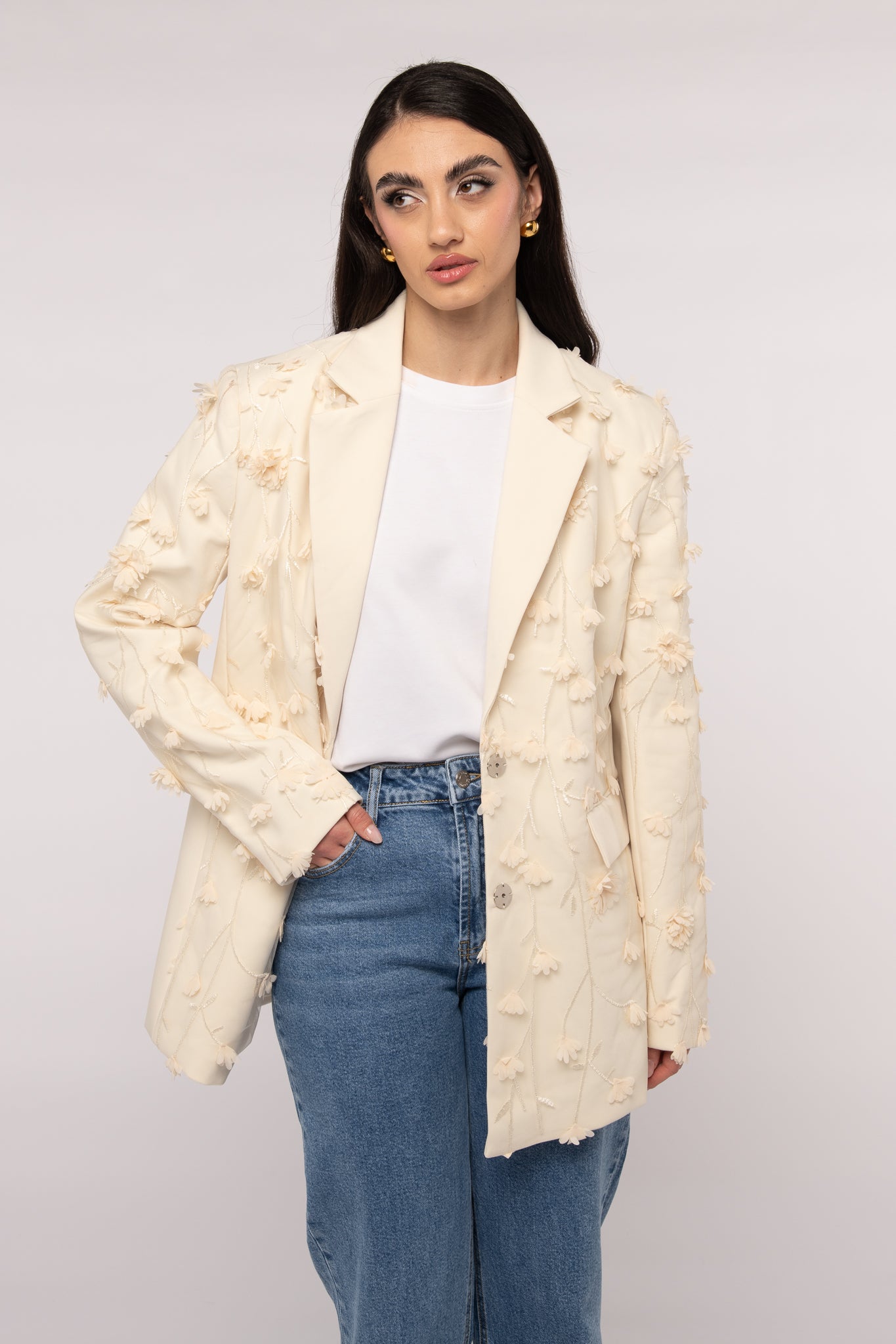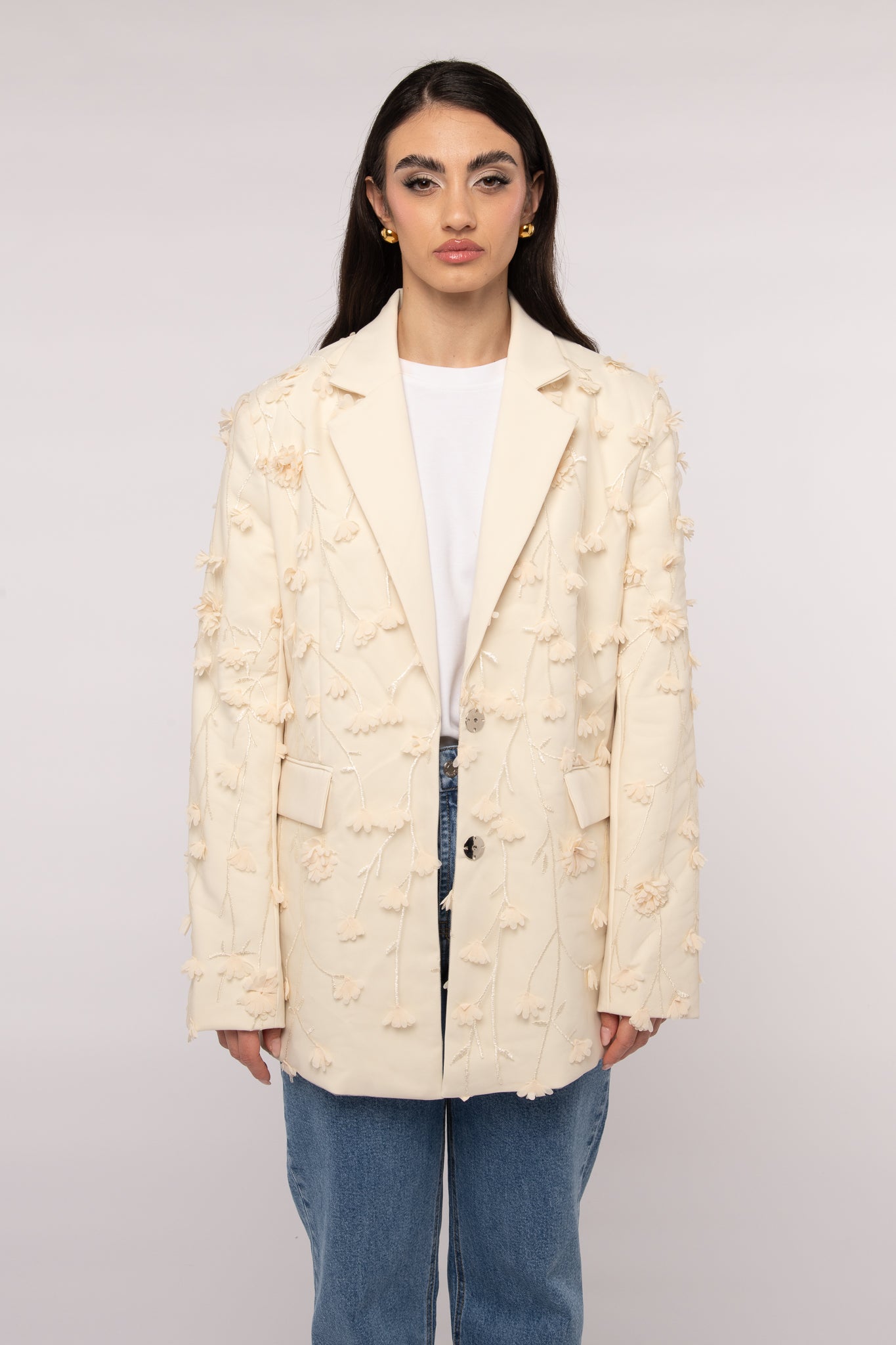 Blazer ‘APPLICAZIONI FLOREALI’ Panna