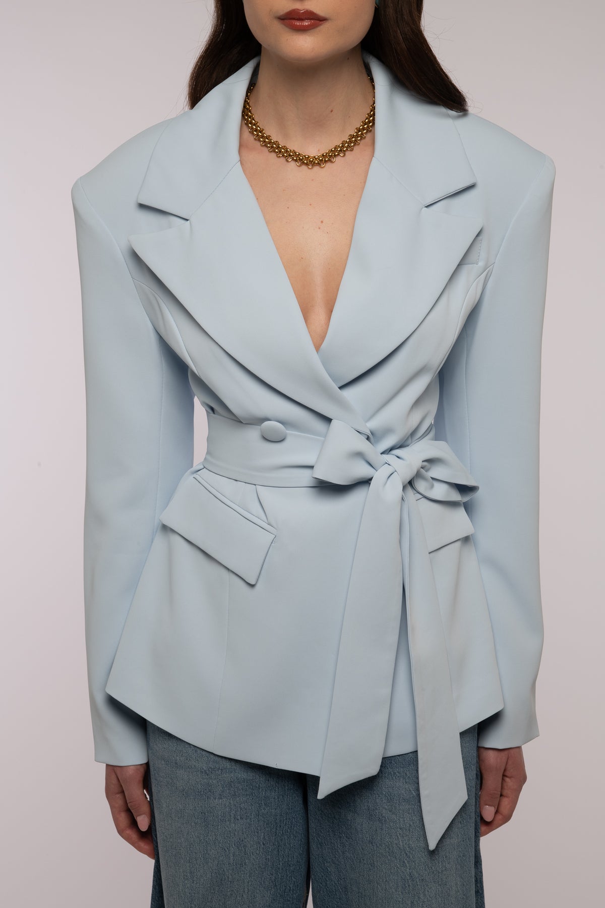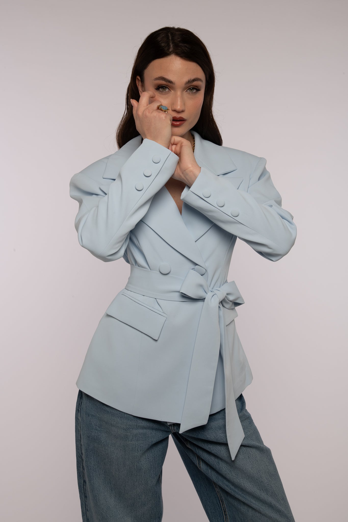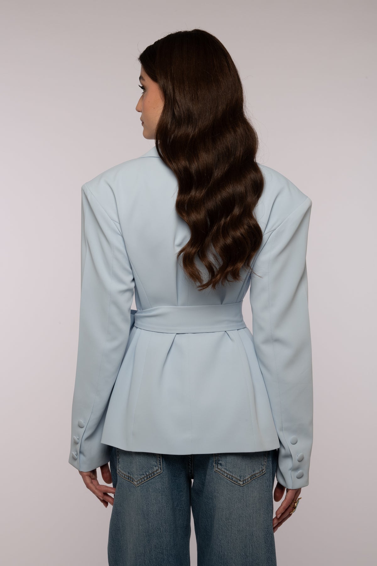 Prezzo unitario perLa modella è alta 1.69, solitamente indossa taglia S, del blazer indossa taglia S/M, la cintura è inclusa, foderato internamente, chiusura con due bottoni, spalline interne, la differenza tra le taglie è minima.