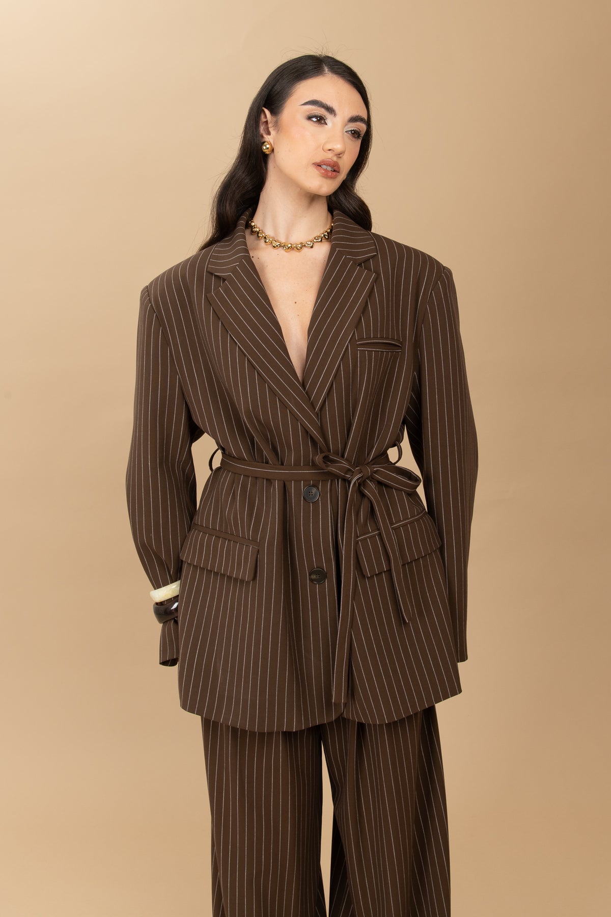 Blazer ‘GESSATO BY LUMINA’ mini cinturino CACAO
