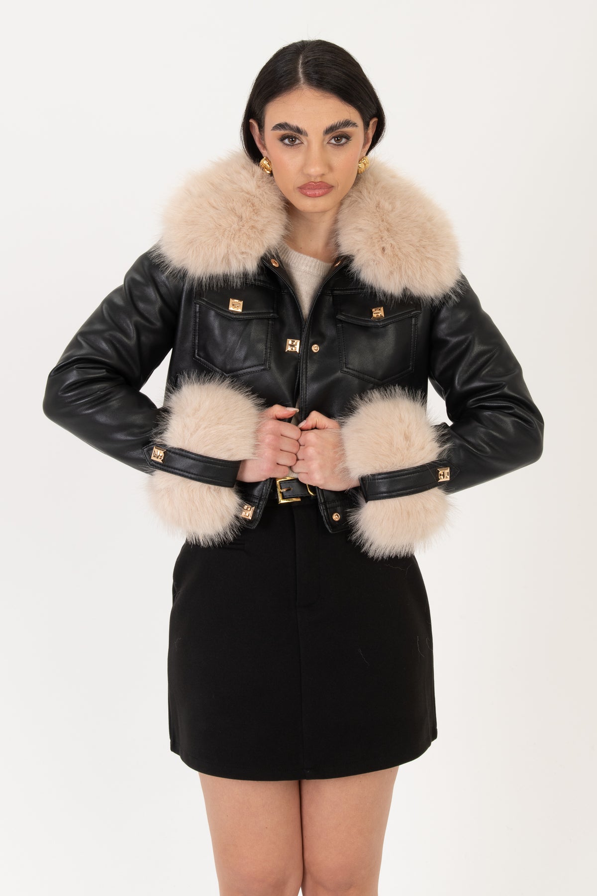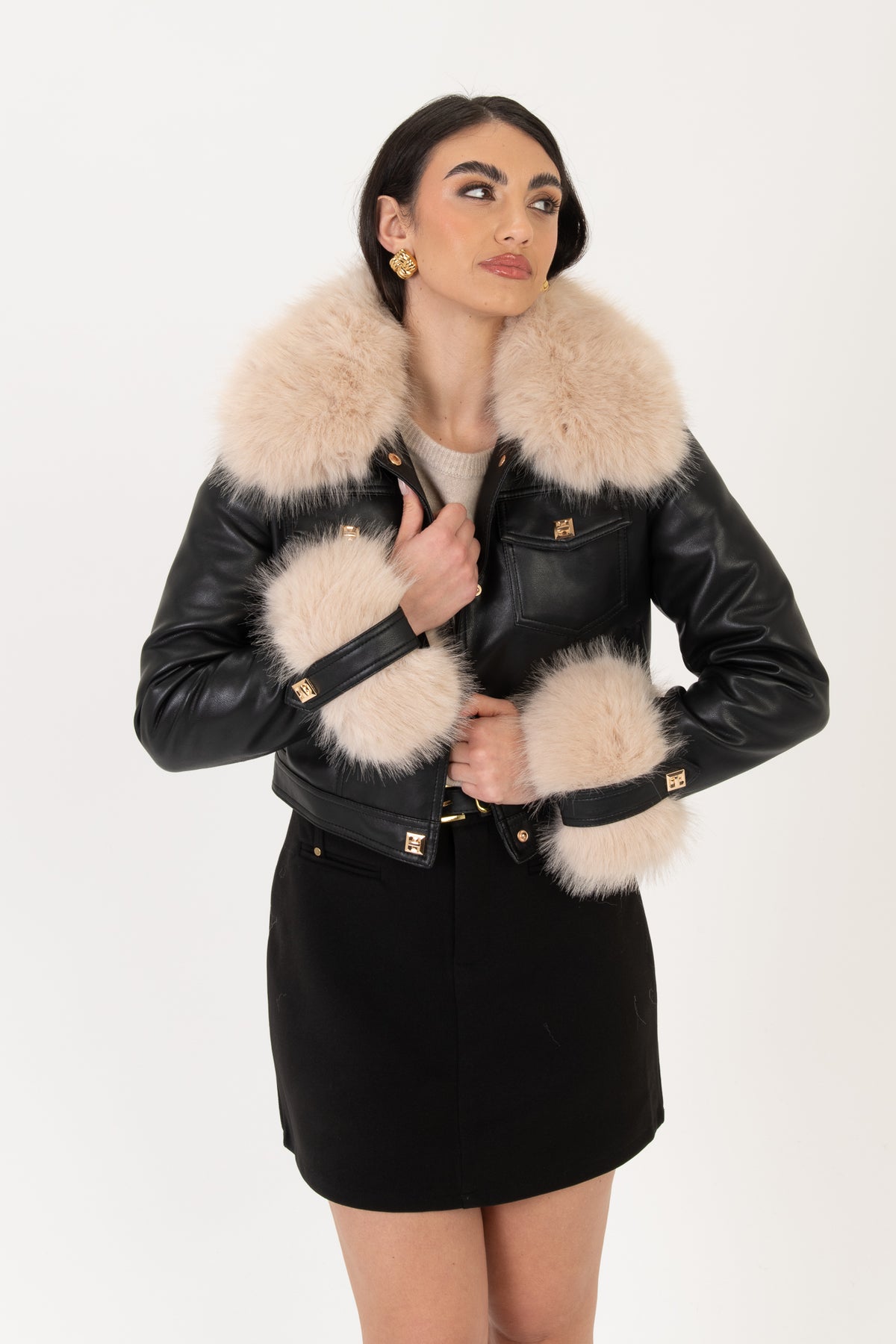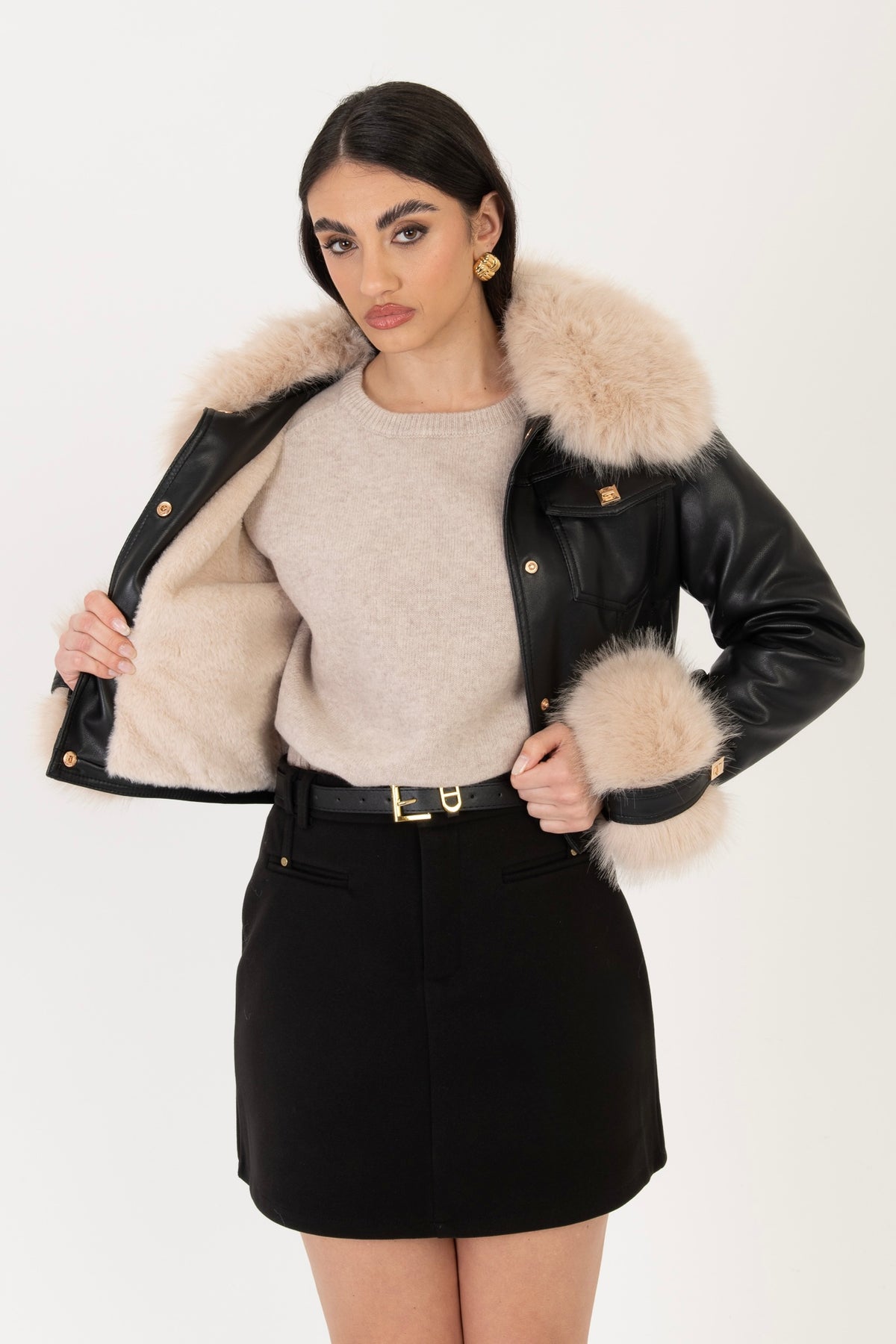 Giacca eco-pelle ‘COLLO E MANICA RIMOVIBILI’ Nero
