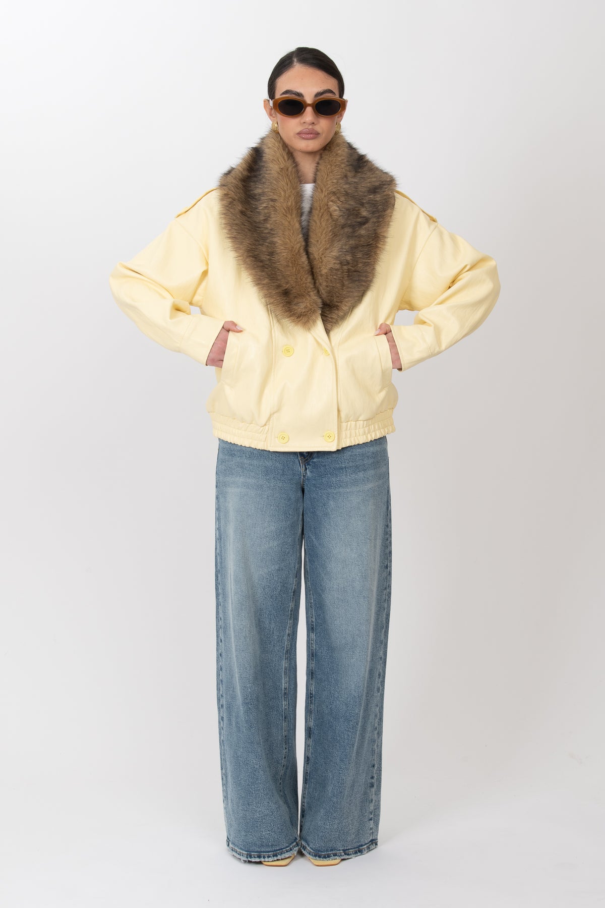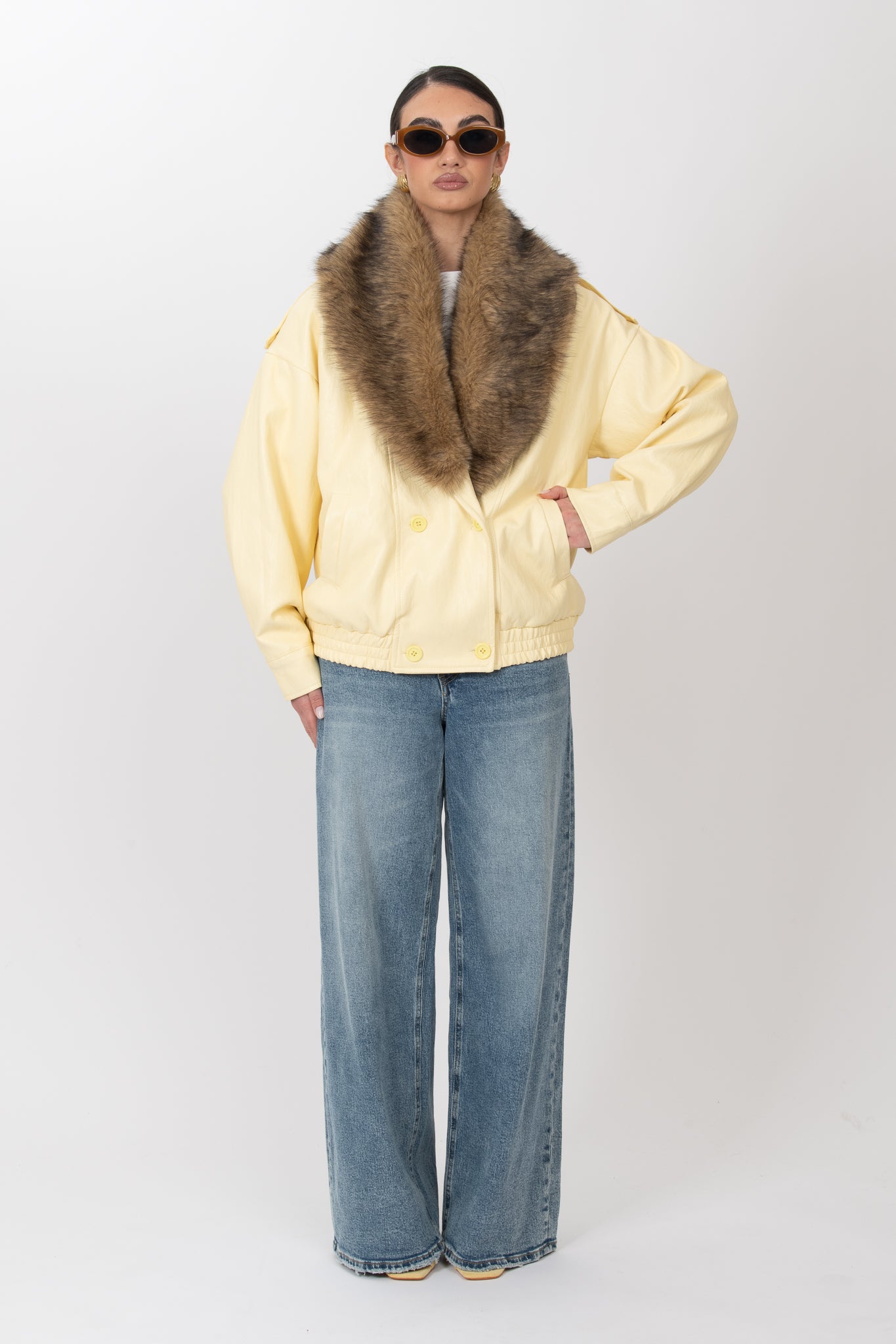 Bomber ecopelle ‘COLLO ECO-PELLICCIA’ Giallo