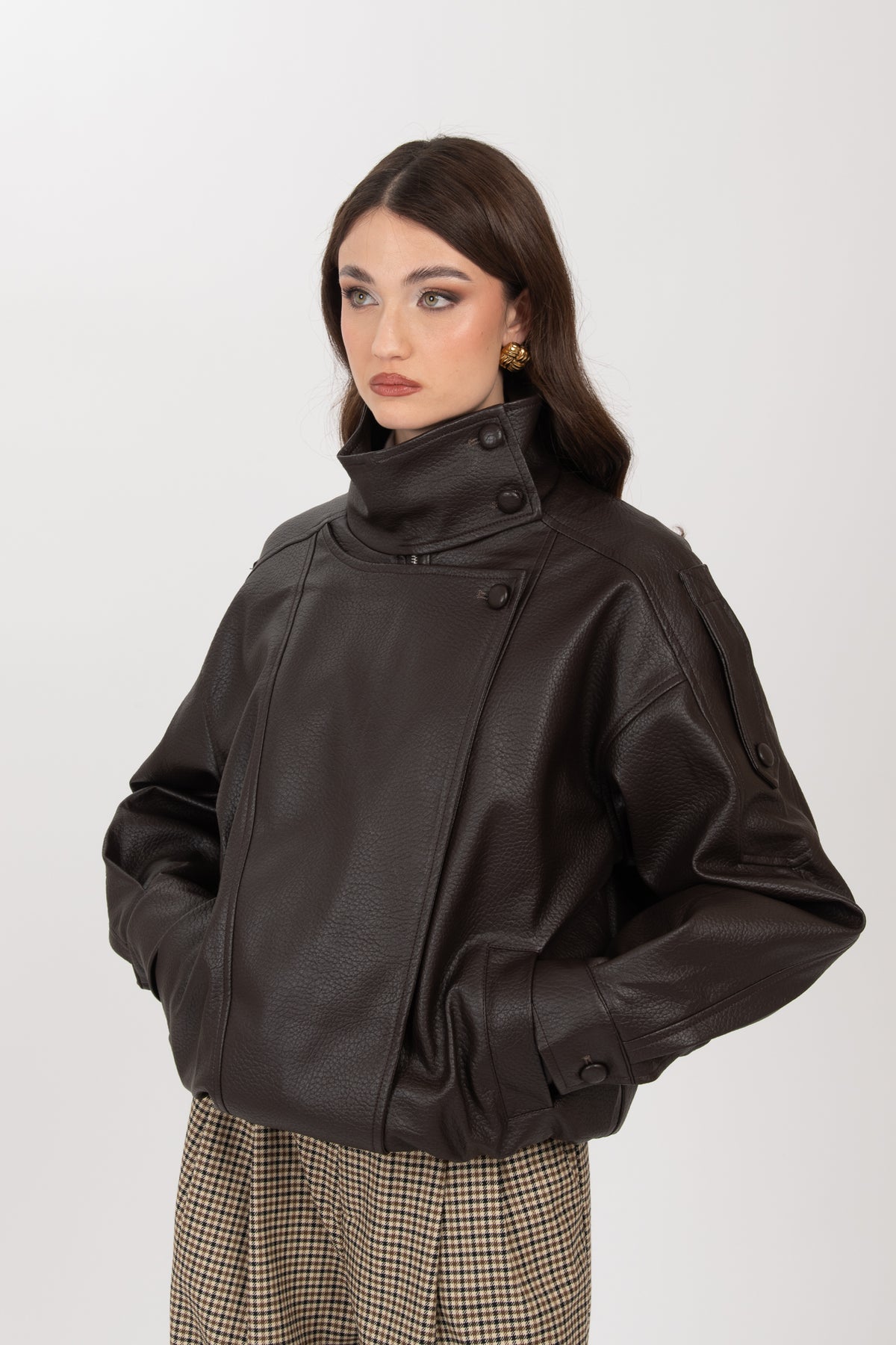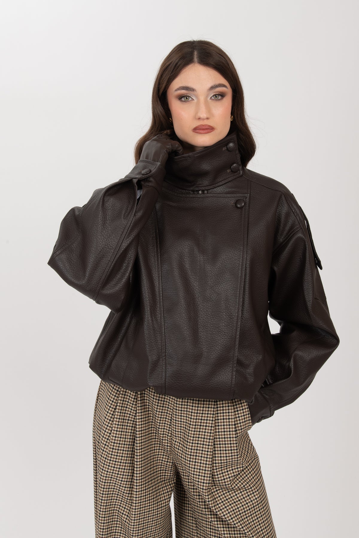 Chiodo/Bomber ‘COLLO ALTO’ ecopelle Cacao