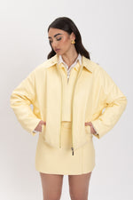 Chiodo/Bomber è taglia unica veste da una XS ad una L regolare leggermente elasticizzato, chiusura zip sul davanti, elastico sul fondo, manica leggermente svasata, veste regolarmente e leggermente over size.