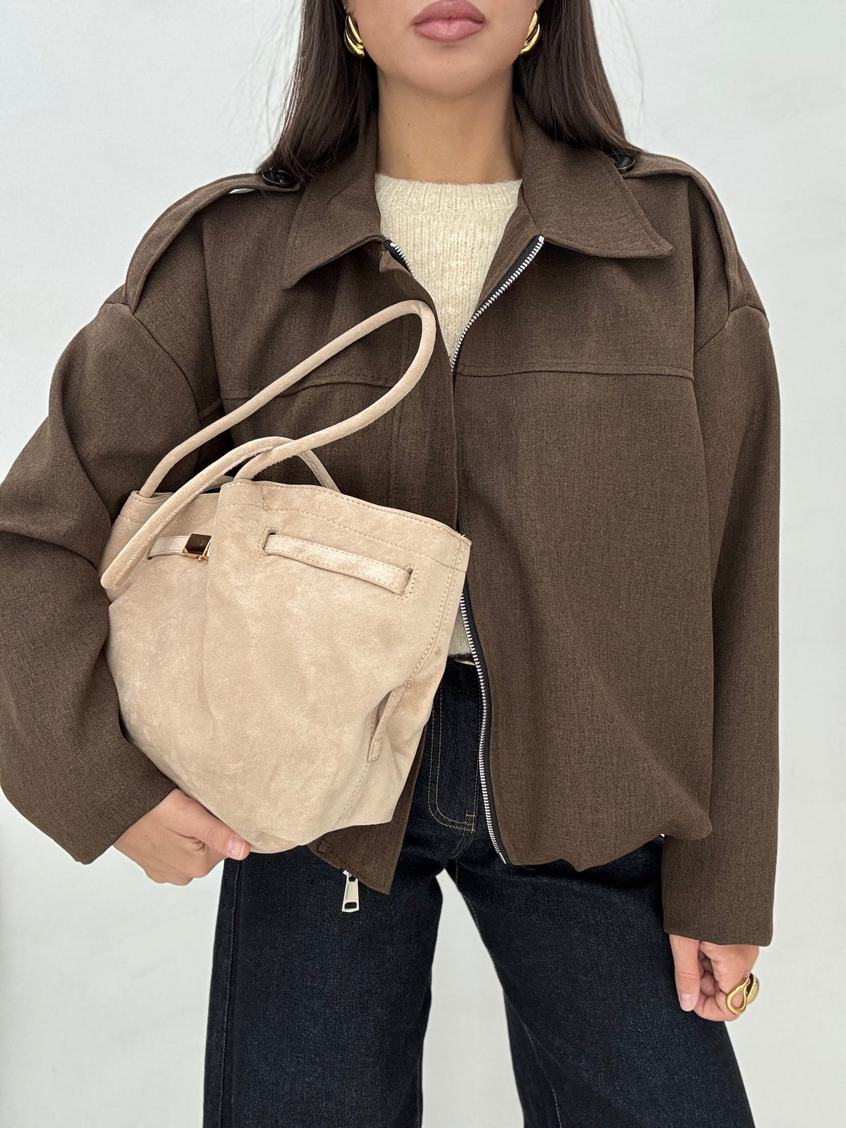 Prezzo unitario perRoberta solitamente indossa taglia XS ed è alta 1.63, il bomber è taglia unica con elastico sul fondo a scomparsa, chiusura con zip, tasche vere, foderato internamente, manica larga e a palloncino, veste da taglia Xs ad una L.