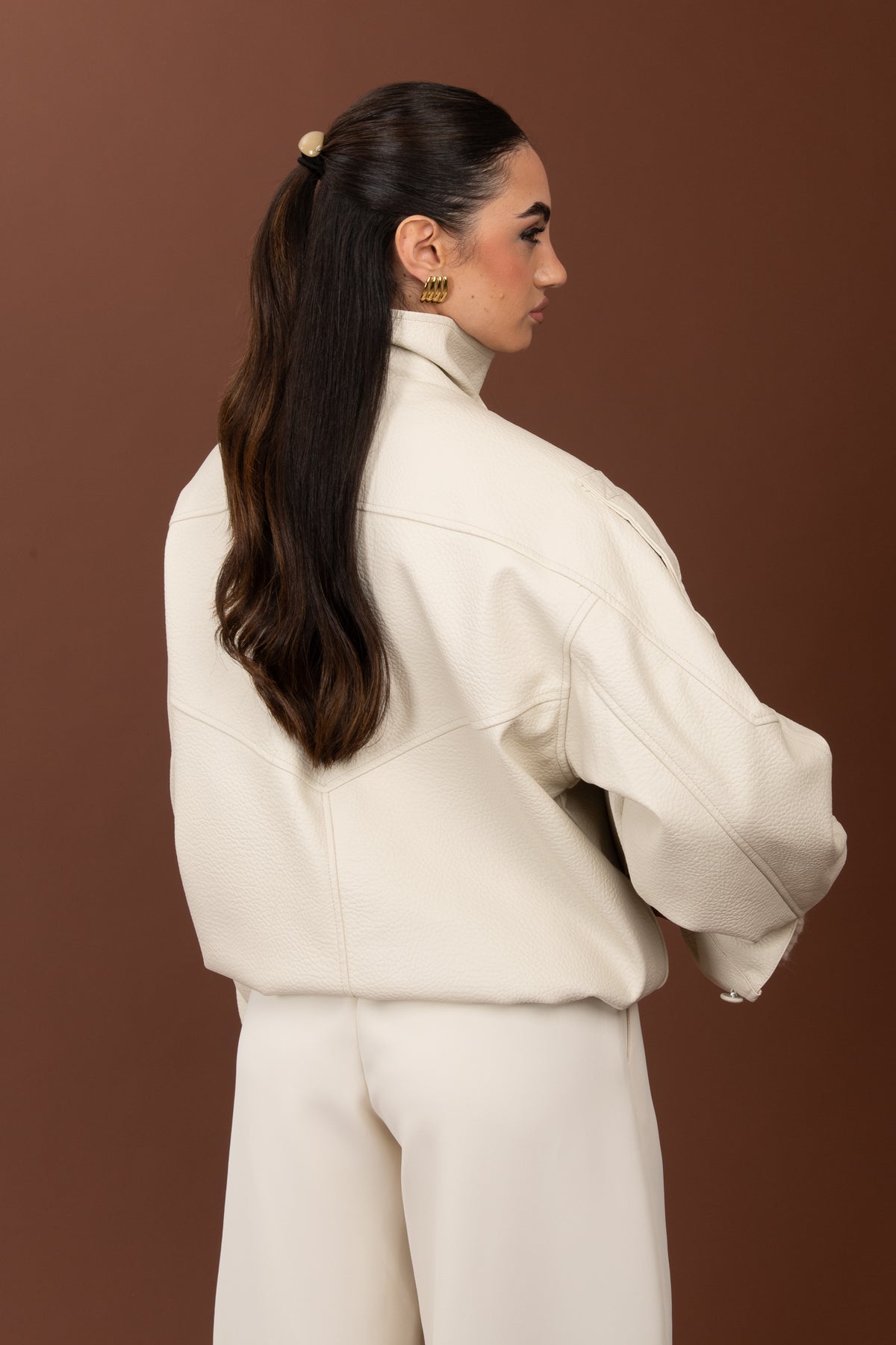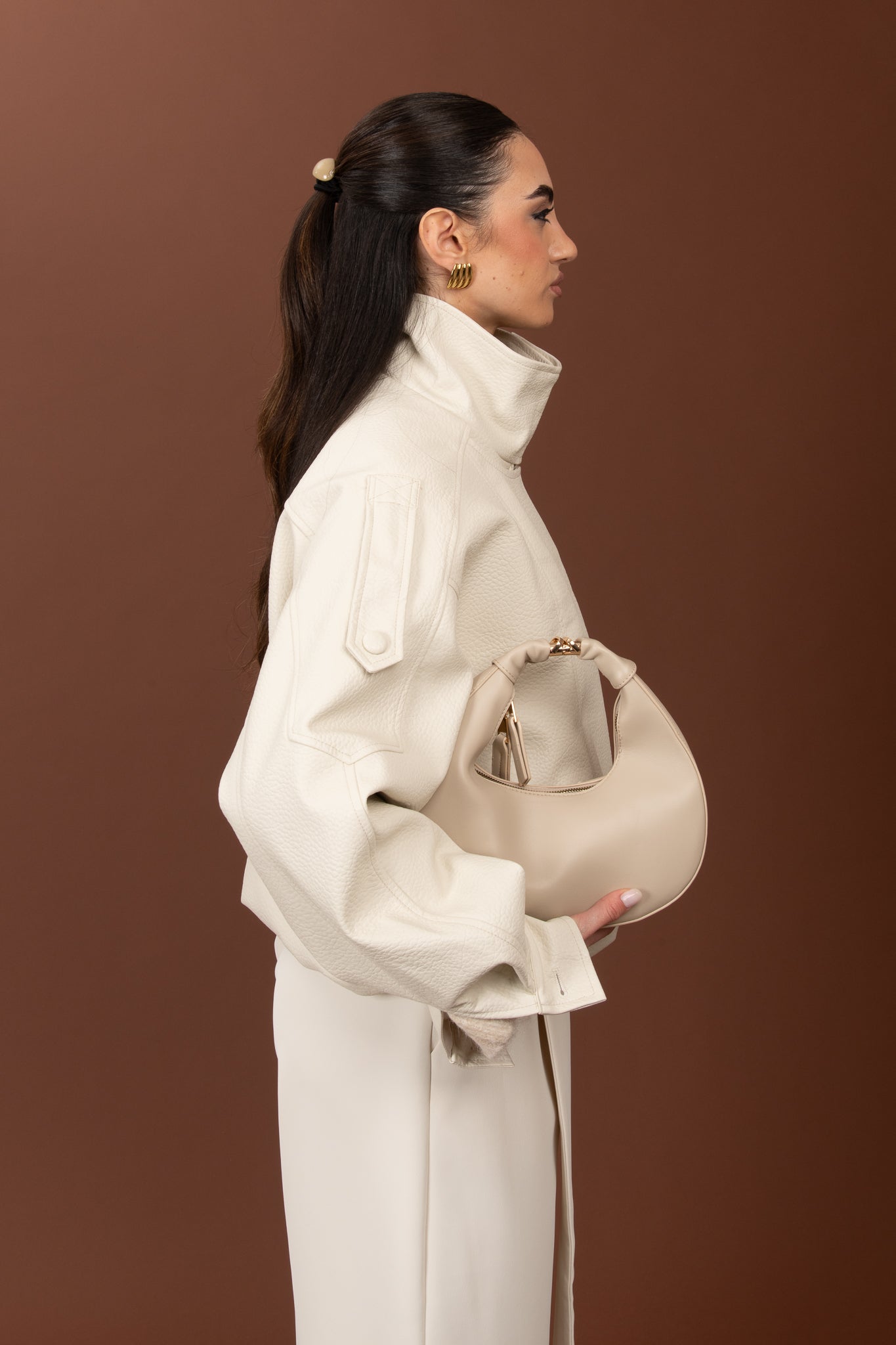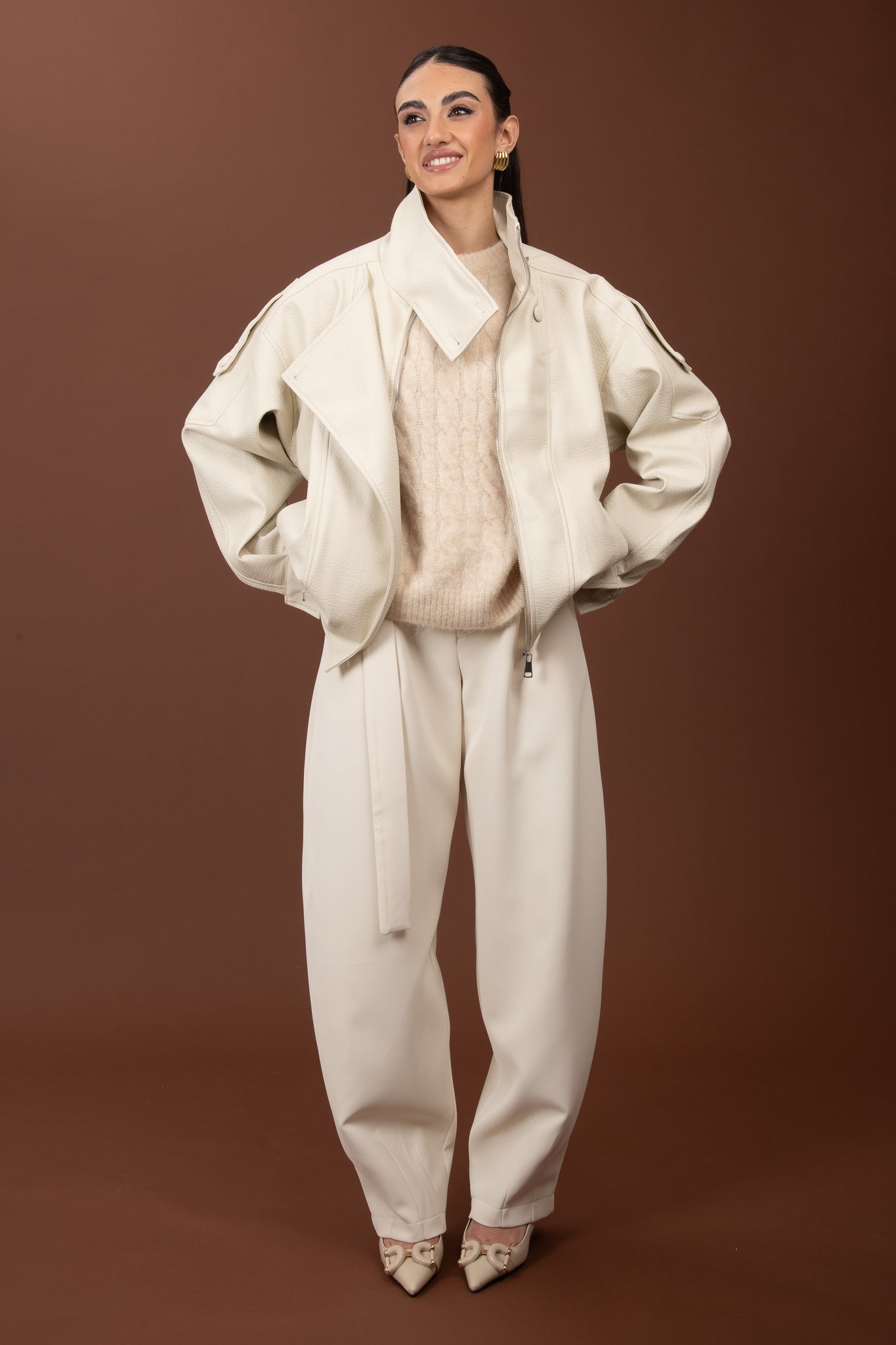 Chiodo/Bomber ‘COLLO ALTO’ ecopelle Panna