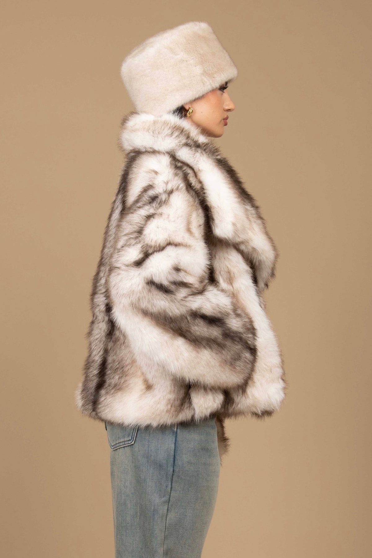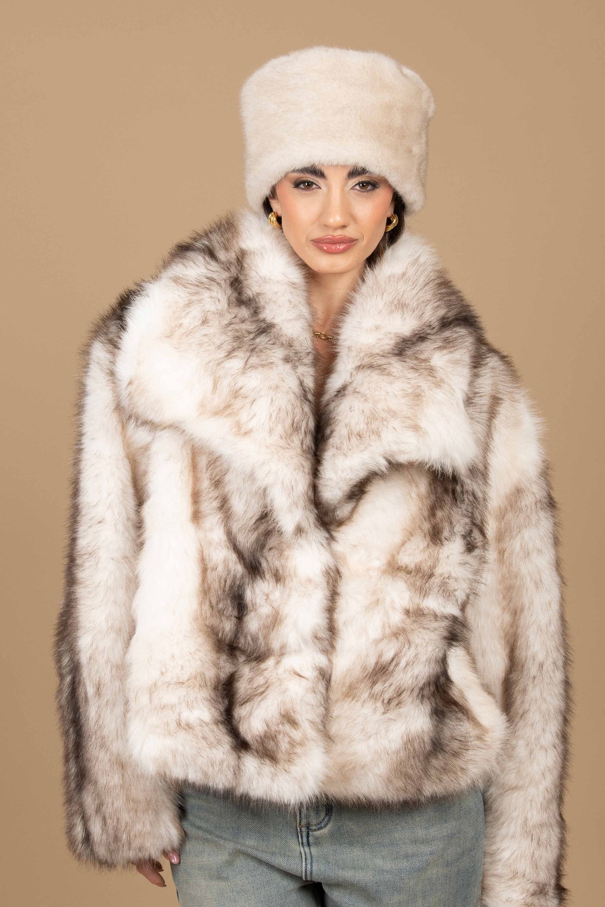 Eco-Pelliccia taglia unica, interamente foderata, tasche sul davanti e chiusura bottoni a clip, veste da taglia Xs ad una L abbondante.