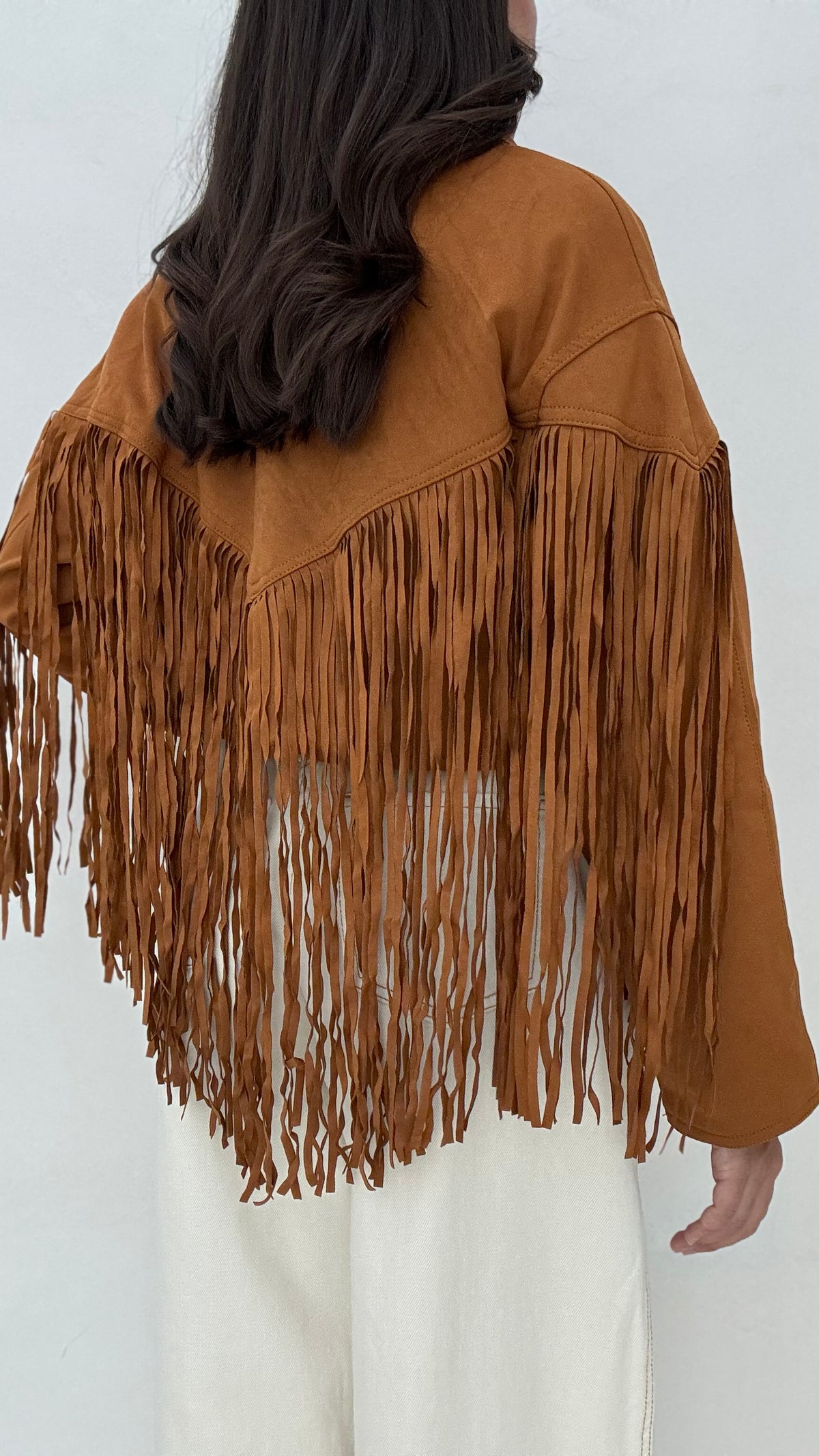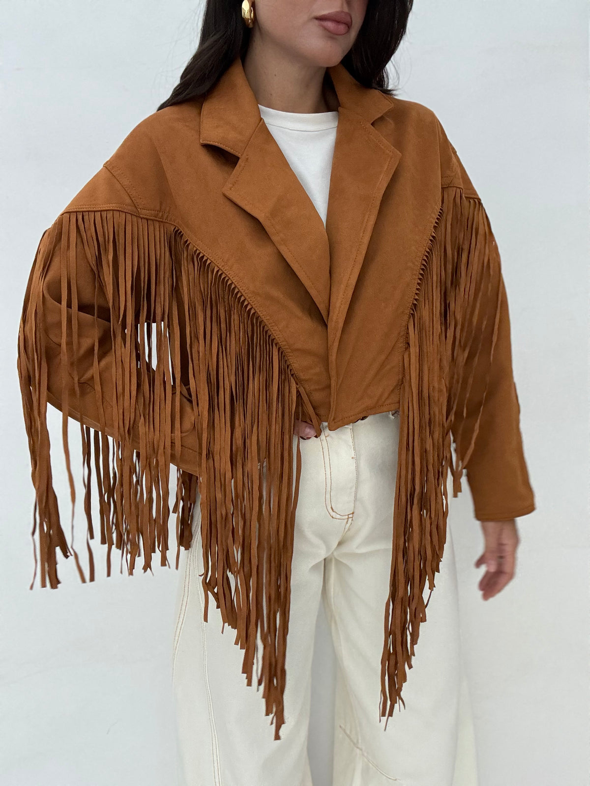 Giacca crop ‘SUEDE E FRANGE’ Camel