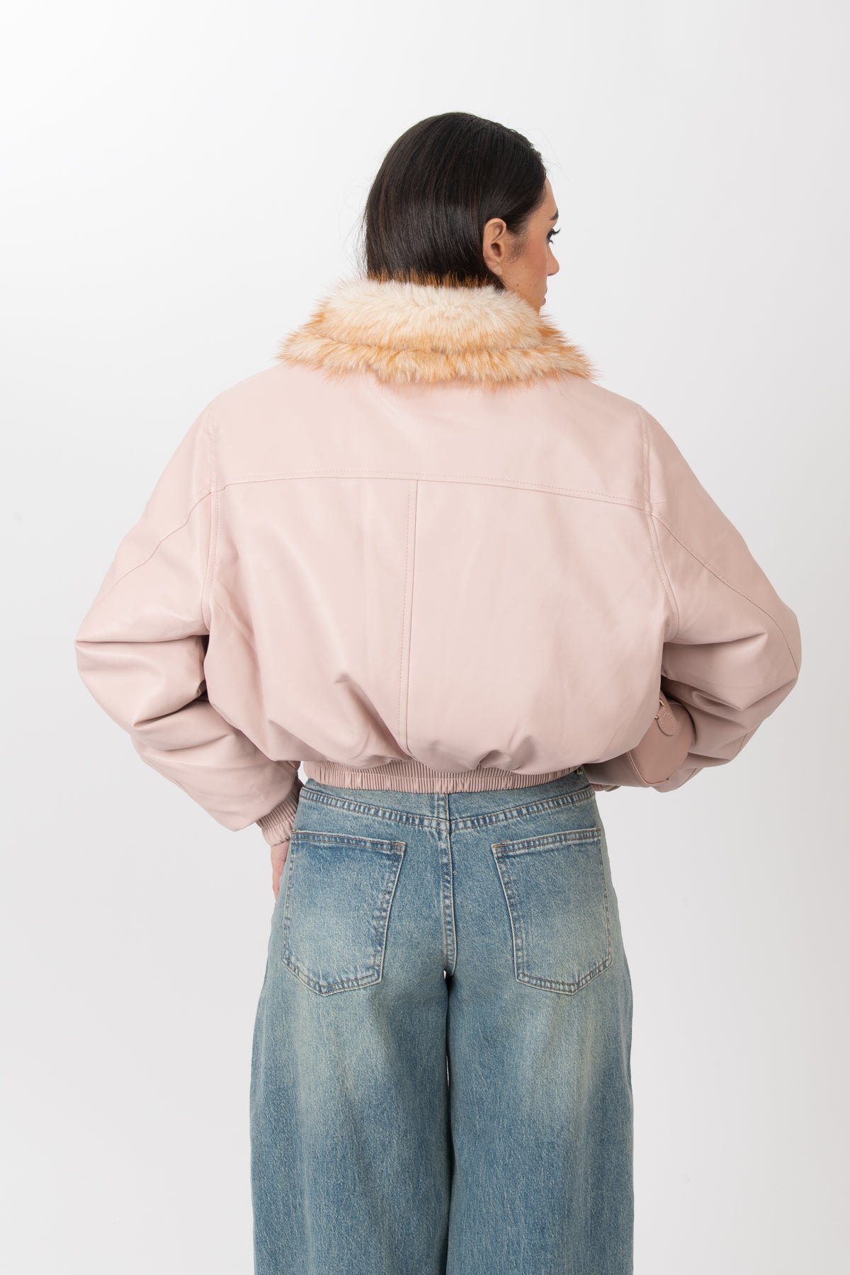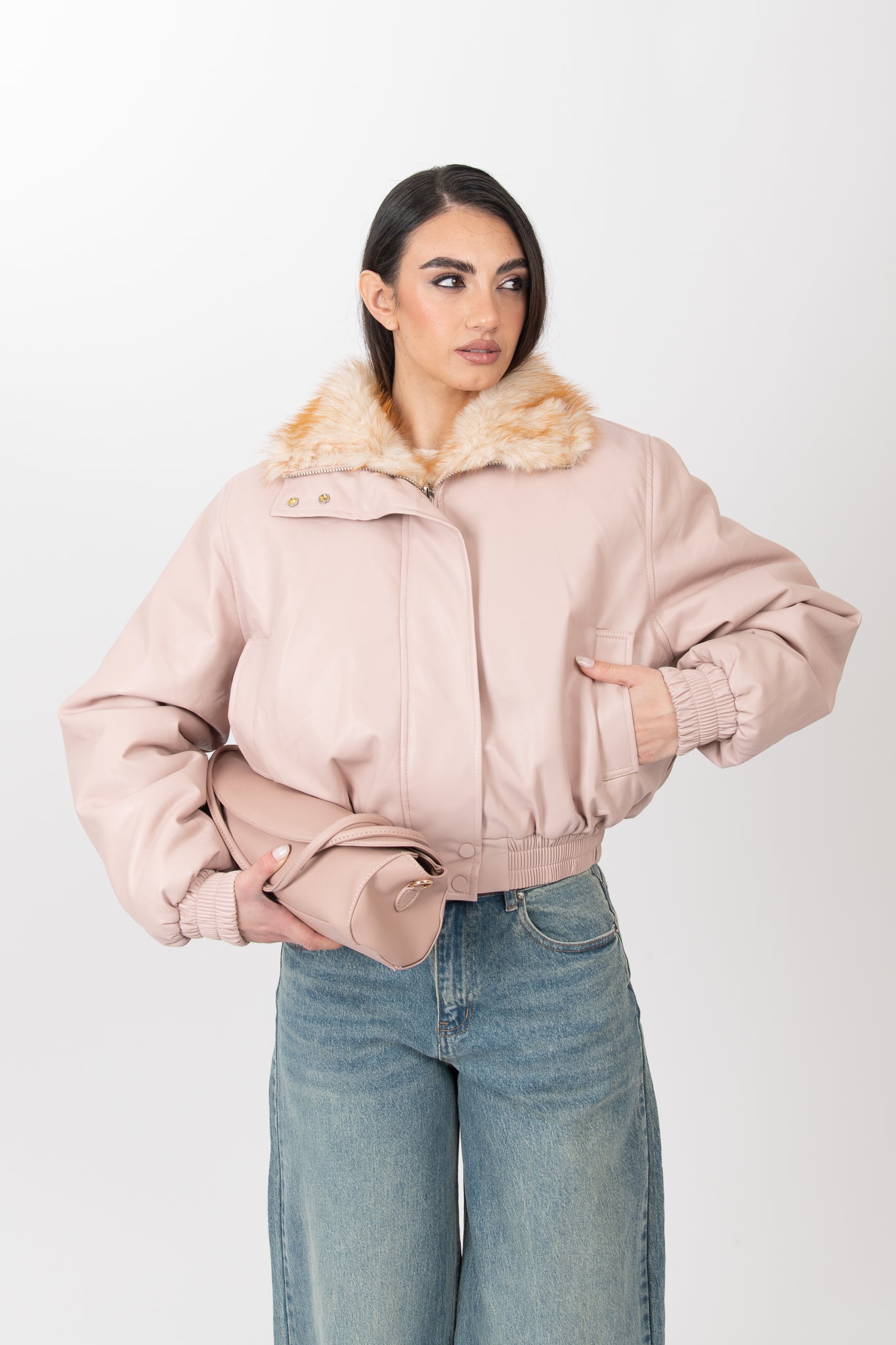 Bomber con eco pelliccia interna è taglia unica, veste da una XS ad una L lunghezza regolare, con elastico sul fondo e sul polso,poco elasticizzato, elastico sul fondo, chiusura con zip e bottoni sul collo e sul fondo , tasche vere sul davanti,collo alto.
