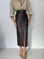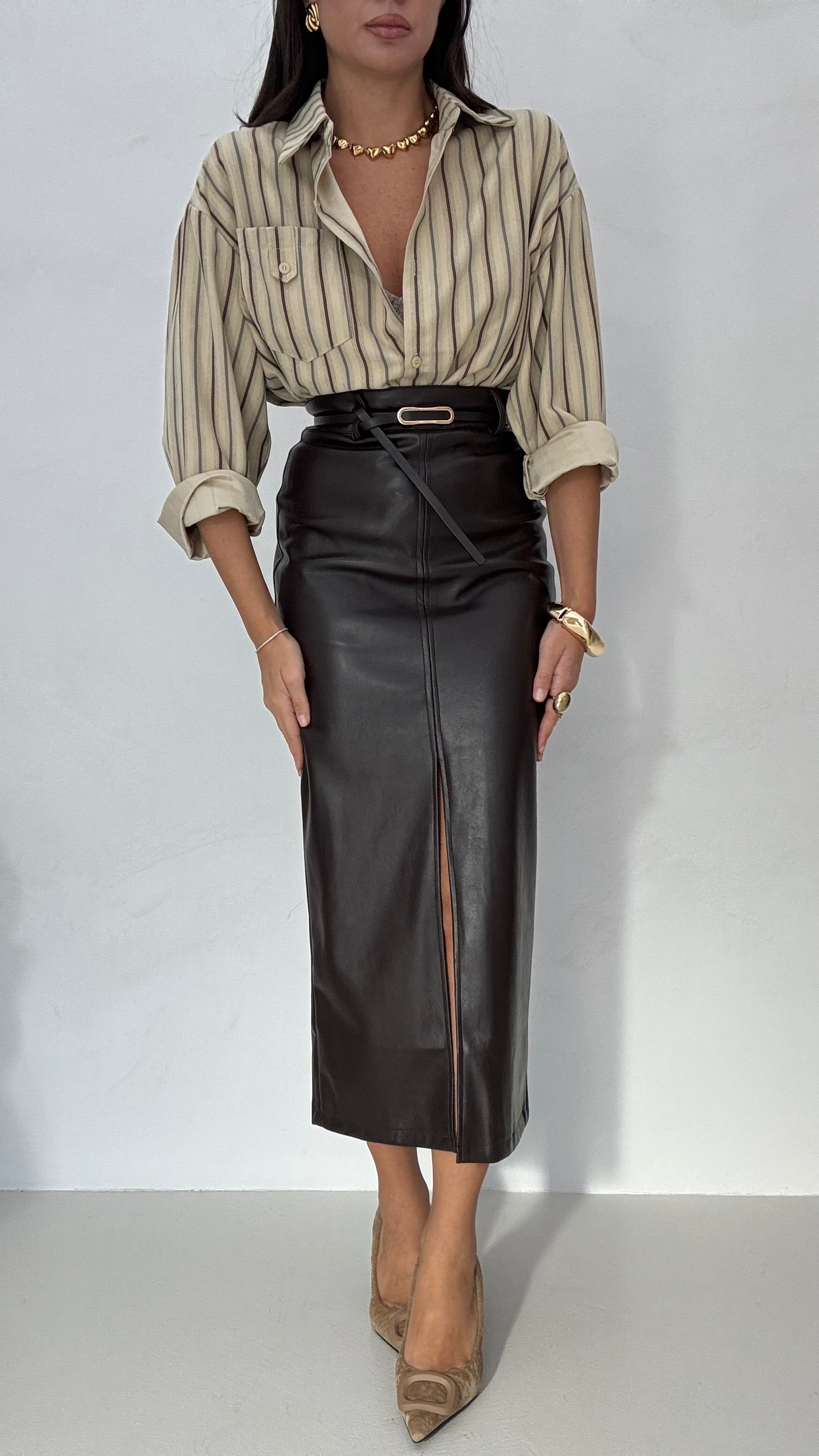 Gonna ‘SPACCO CENTRALE’ in ecopelle Cacao
