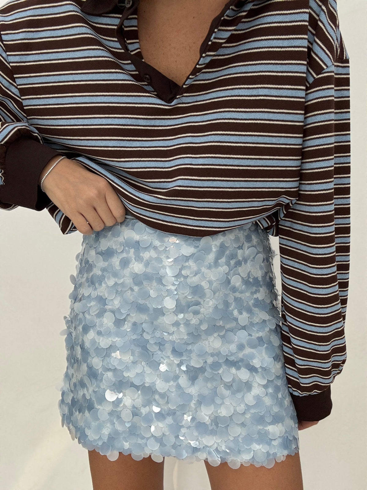 Prezzo unitario perRoberta solitamente indossa taglia XS ed è alta 1.63, della gonna indossa taglia S , paillettes sia sul retro che sul davanti, non porta l’elastico in vita , zip sul lato, si consiglia una taglia in più