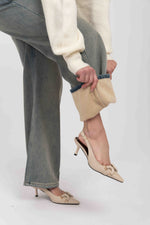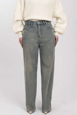 Jeans vita alta con chiusura bottone e zip, gamba morbida e leggermente elasticizzata, doppi passanti sul davanti, tasche sia sul davanti che sul resto, interno in pile.