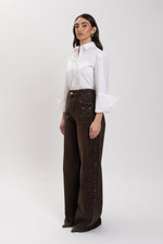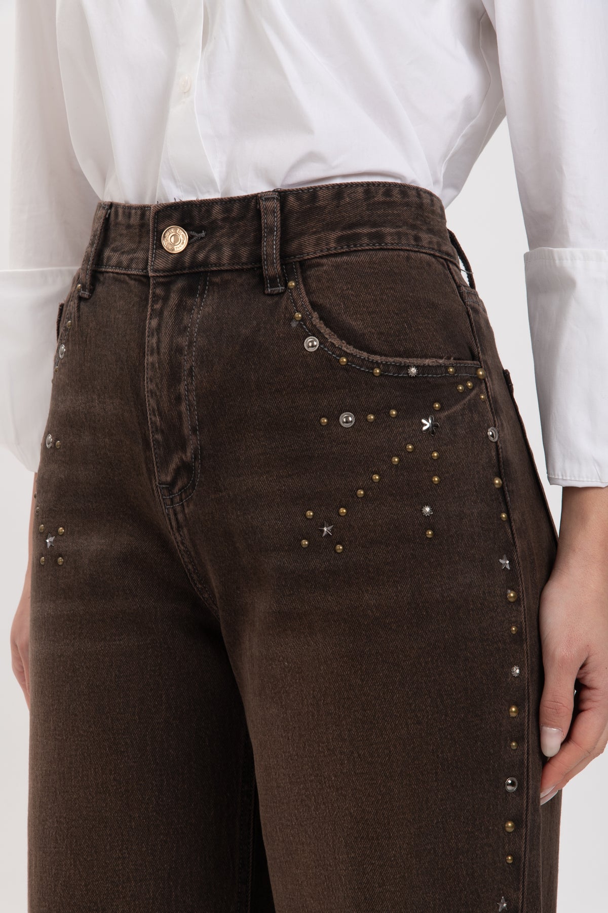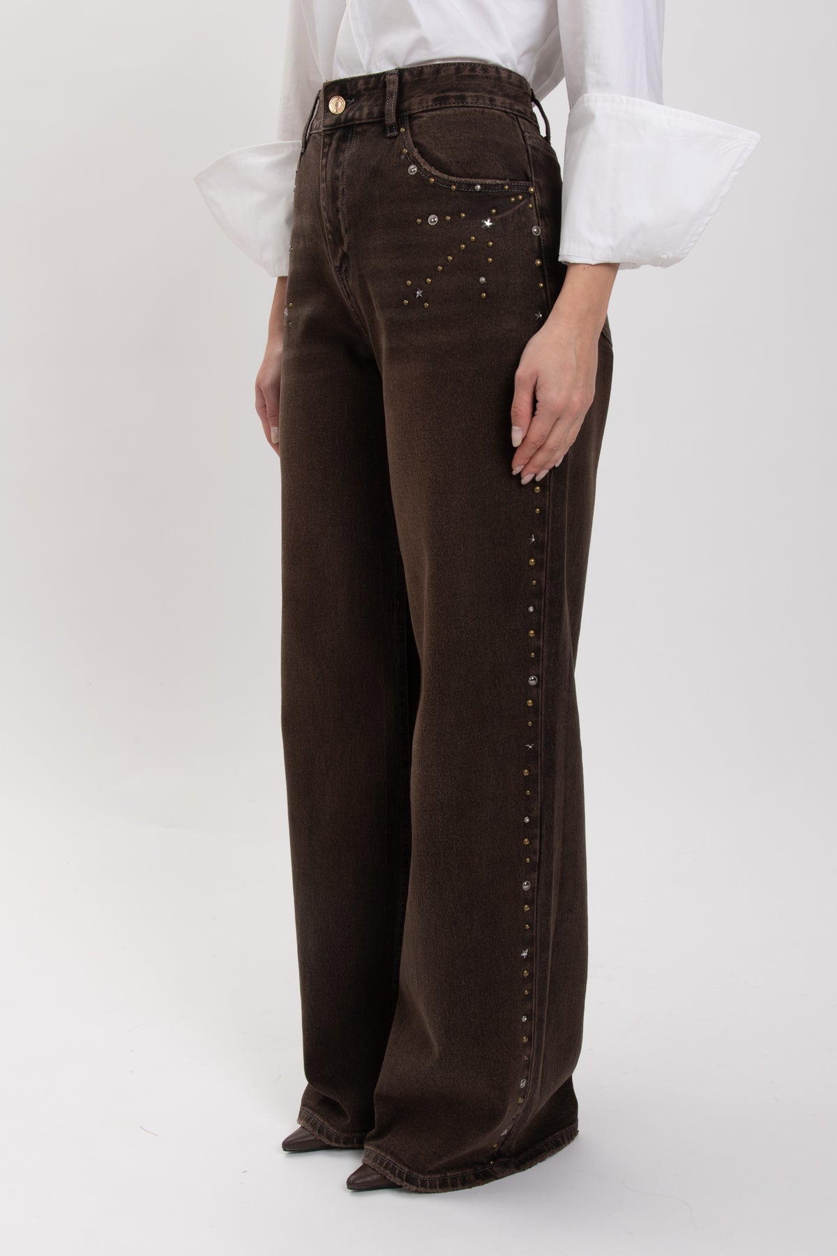 Jeans tela rigida con Borchie Cacao