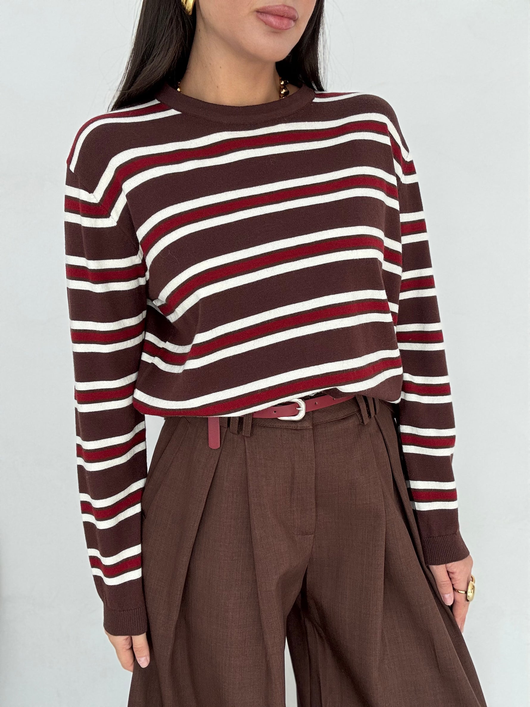 Maglione ‘A RIGHE’ Cacao Bordeaux e Bianco