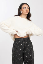 Il maglione è taglia unica, lunghezza regolare, girocollo, leggermente elasticizzato, veste da taglia XS ad una L abbondante.