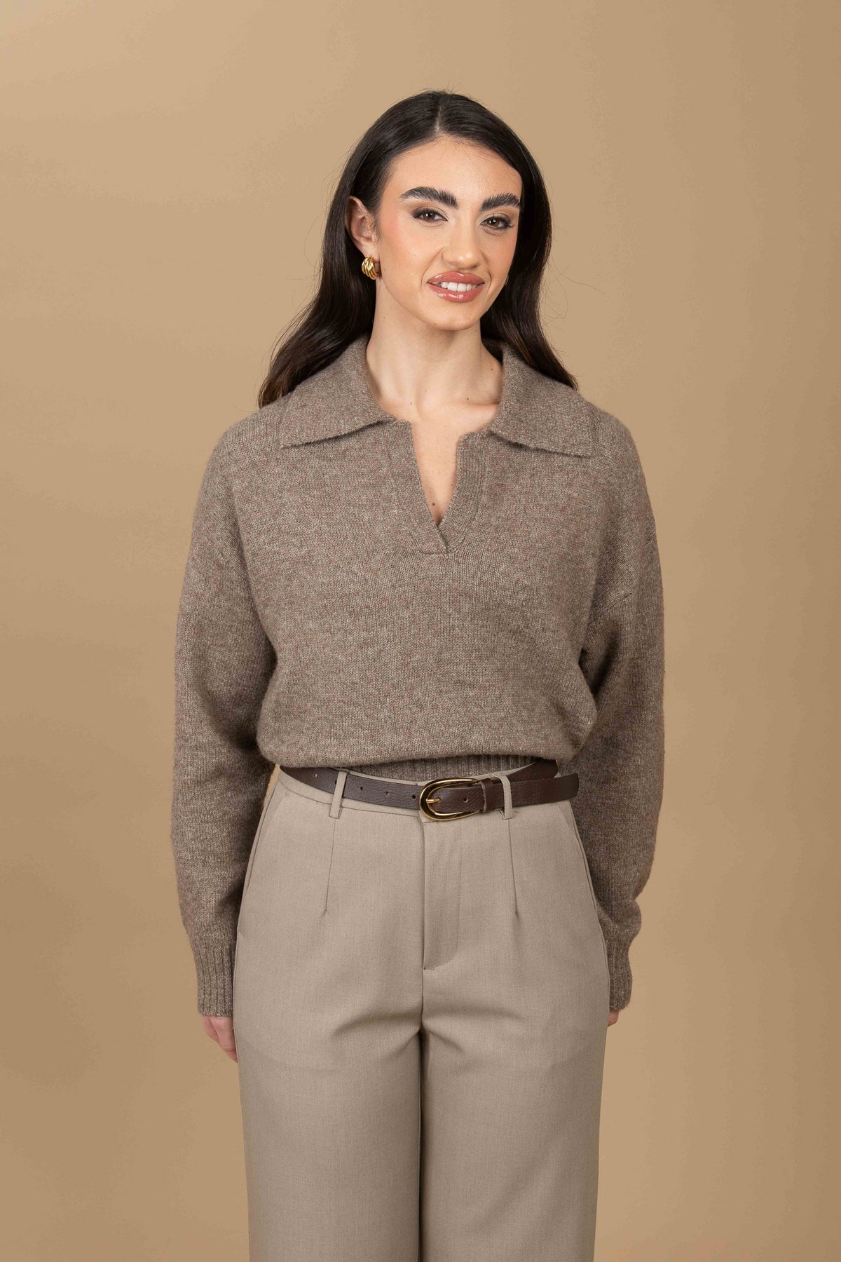 Maglione taglia unica, lunghezza regolare, colletto e scollo a V, elasticizzato, veste da taglia Xs ad una L abbondante.