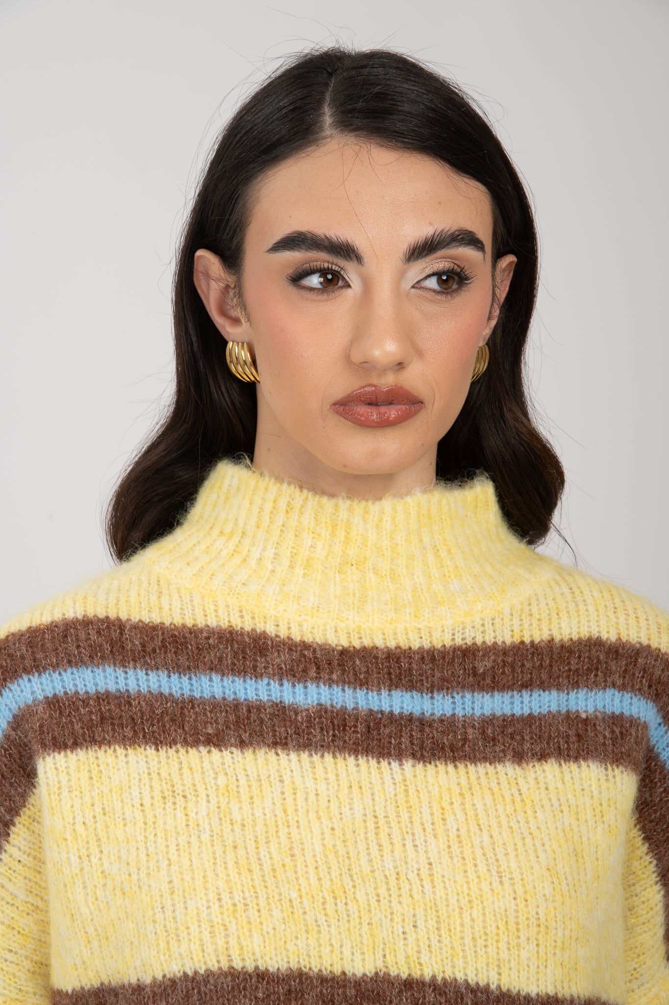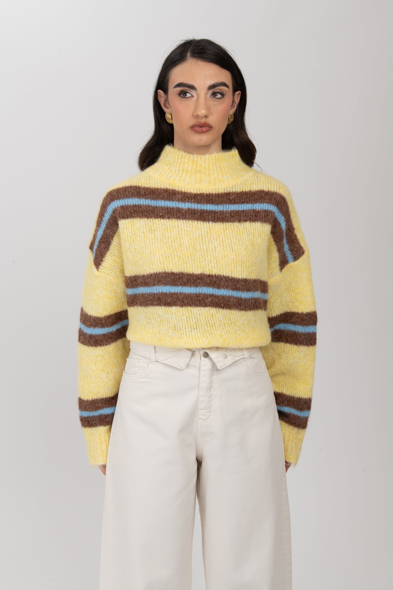 Maglione ‘9% LANA Mezzo Collo’ Giallo Cacao e Azzurro