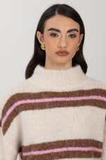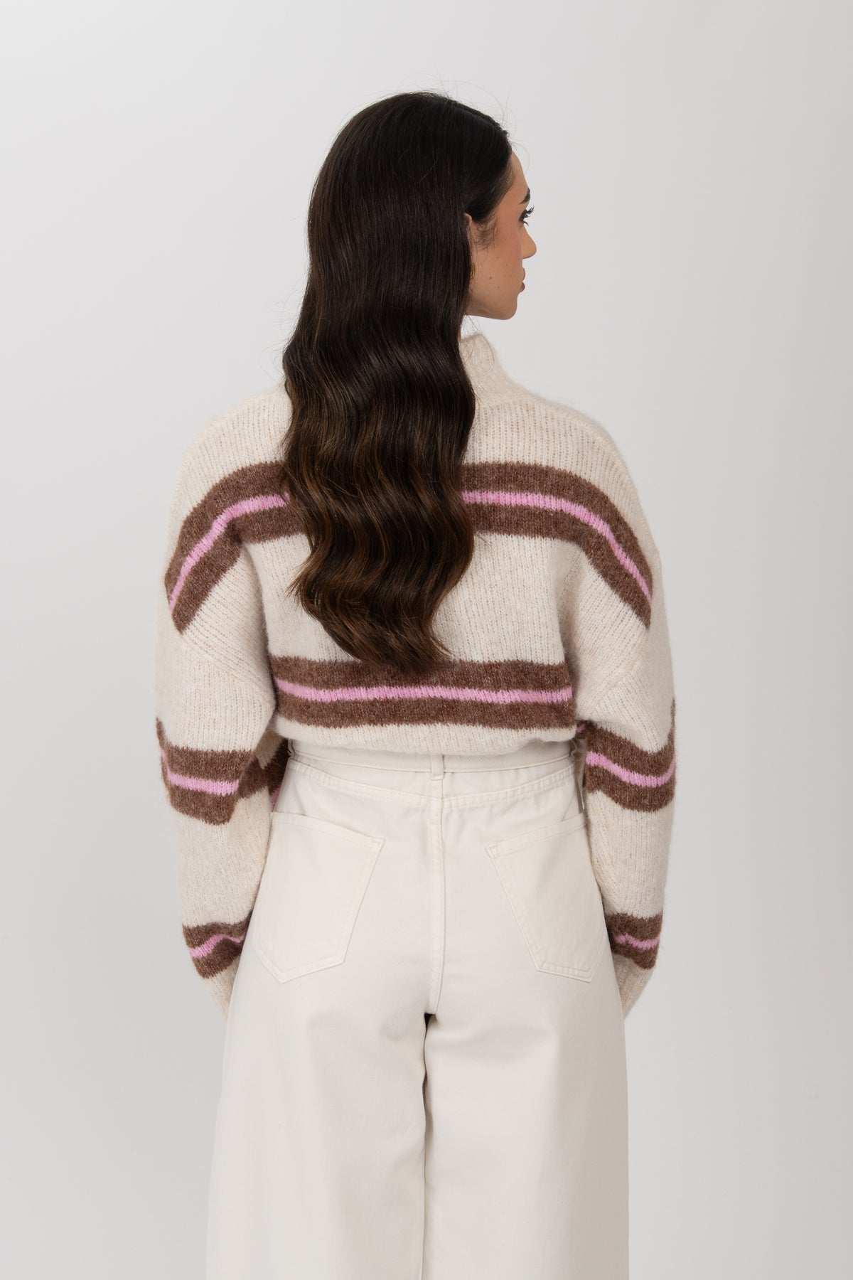 Maglione ‘9% LANA Mezzo Collo’ Panna Cacao e Rosa