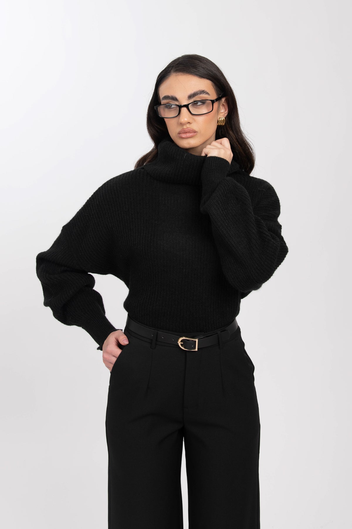Maglione taglia unica, lunghezza leggermente crop ,collo alto, elasticizzato.