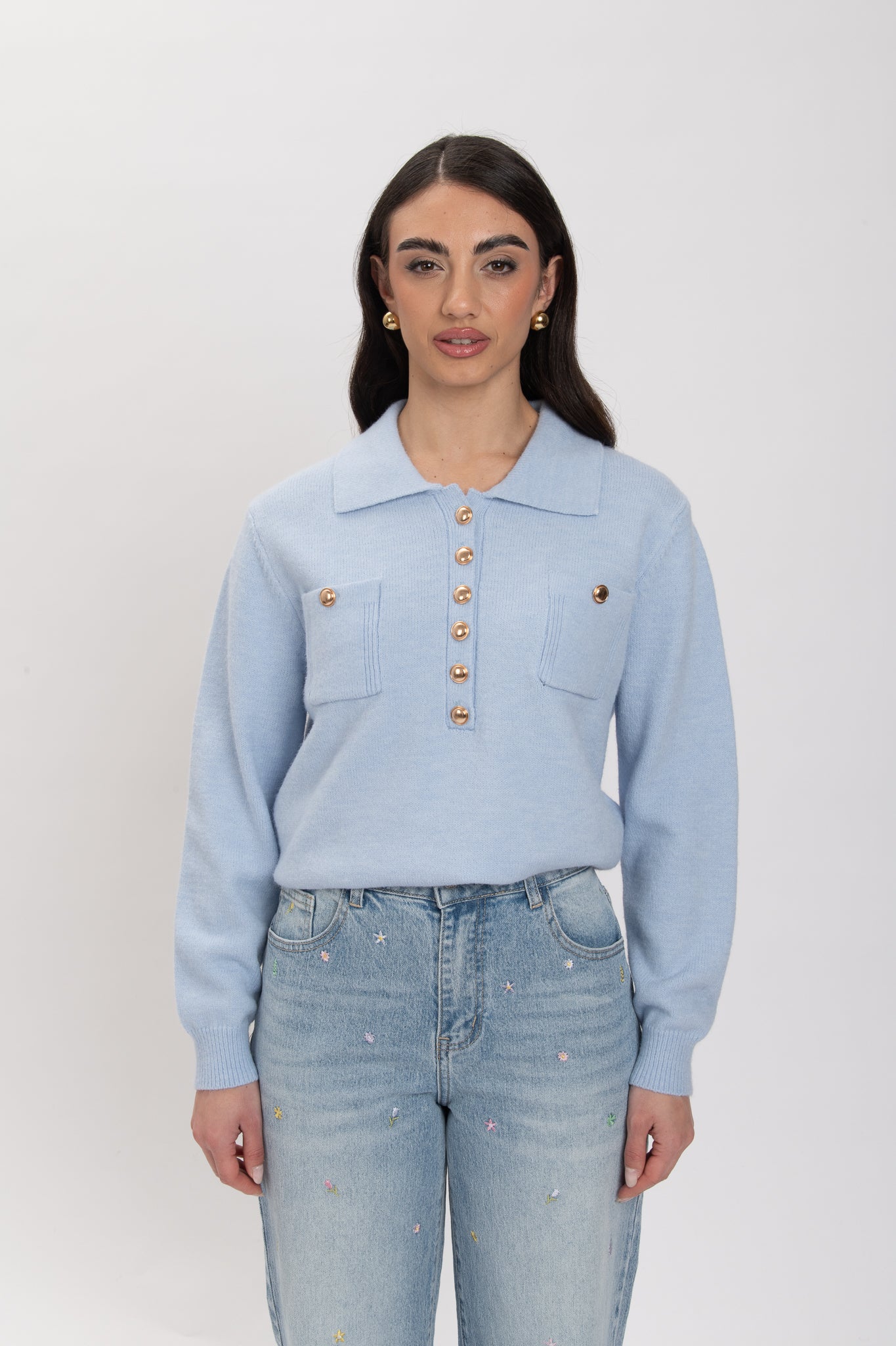 Maglione/Polo ‘BOTTONI ORO’ Azzurro