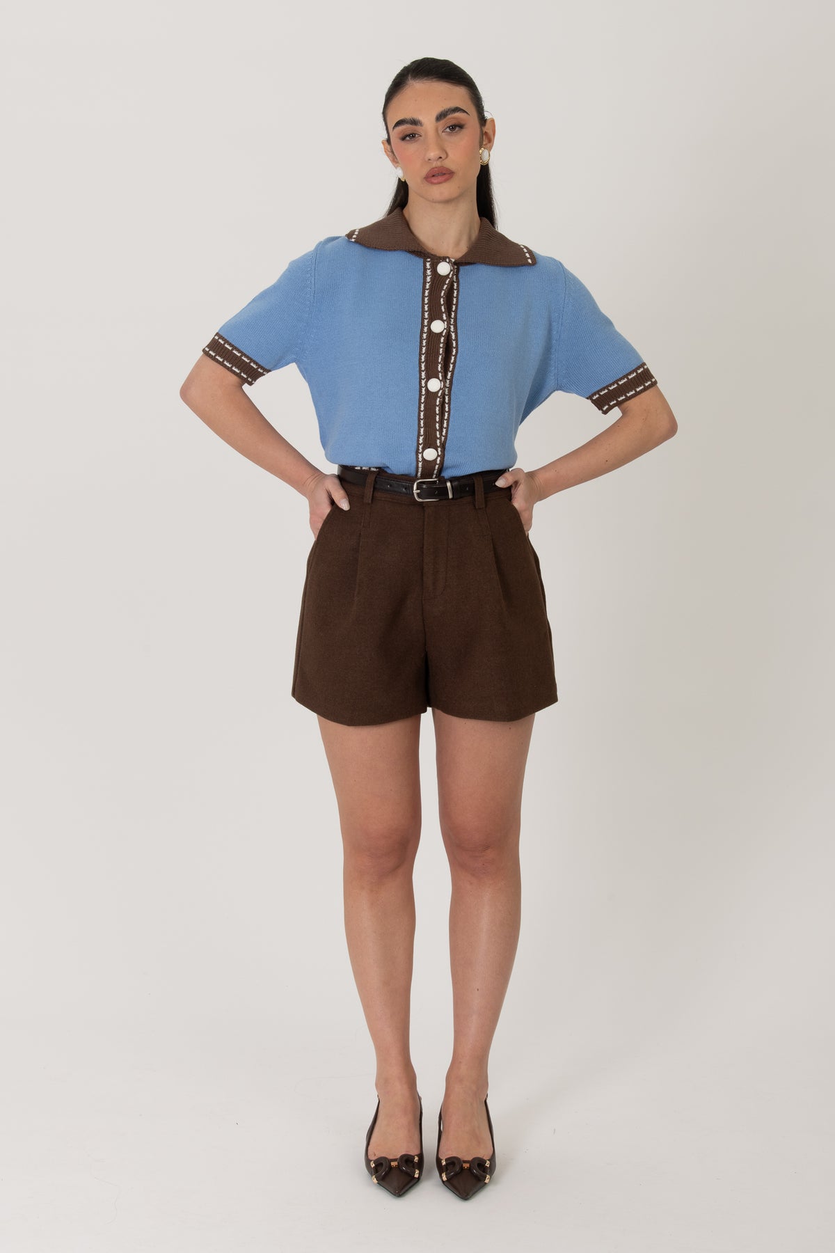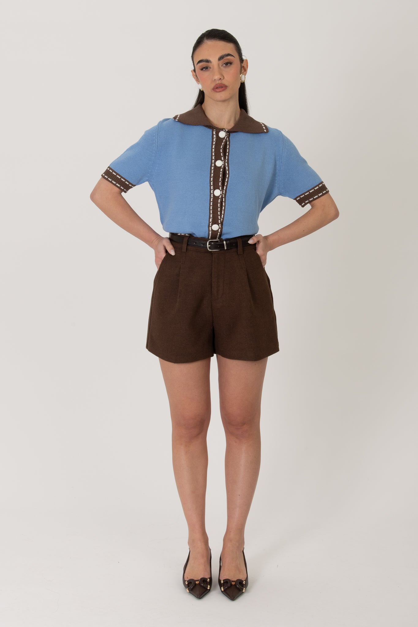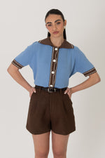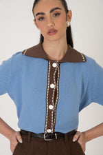 Maglione/Polo ‘BOTTONI RIVESTITI’ Azzurro e Cacao