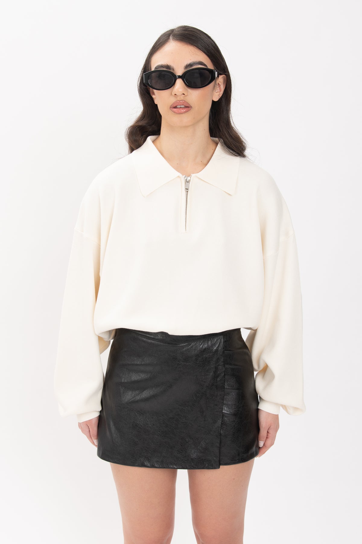 La maglia è taglia unica veste da una XS ad una L regolare, Presenta chiusura con zip sulla parte superiore del collo, lunghezza regolare, leggermente elasticizzata, elastico sul fondo e sul polso.
