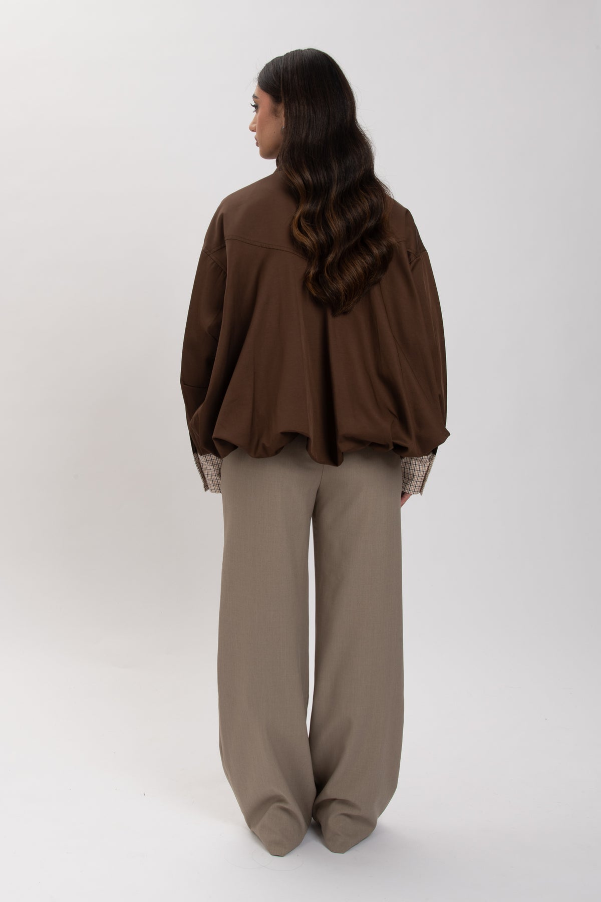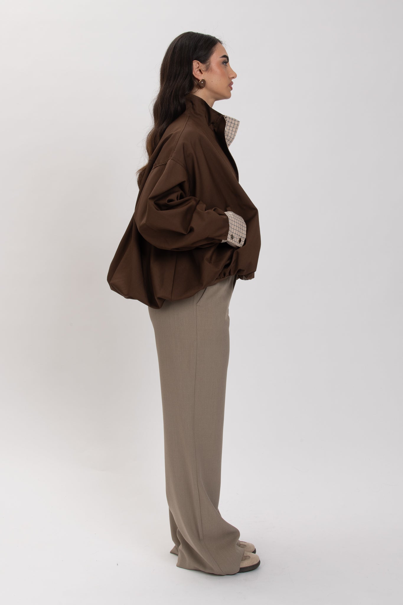 Bomber ‘COLLO ALTO DETTAGLI TARTAN’ Cacao