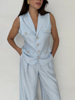 Prezzo unitario perRoberta è alta 1.63, indossa solitamente taglia XS, del coordinato indossa taglia S/M, il gilet ha i bottoni finti, foderato internamente, pantalone con elastico sul retro, chiusura con bottone e zip, tasche vere, gamba mobida, adatto anche a chi è in dolce attesa e per i fisici a pera, la differenza tra le taglie è minima.