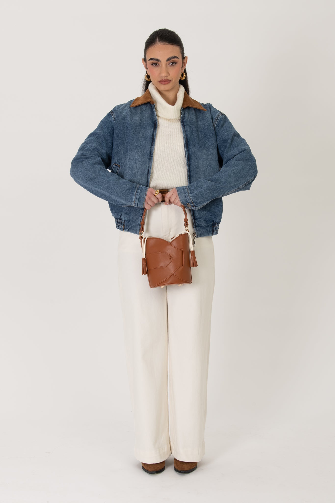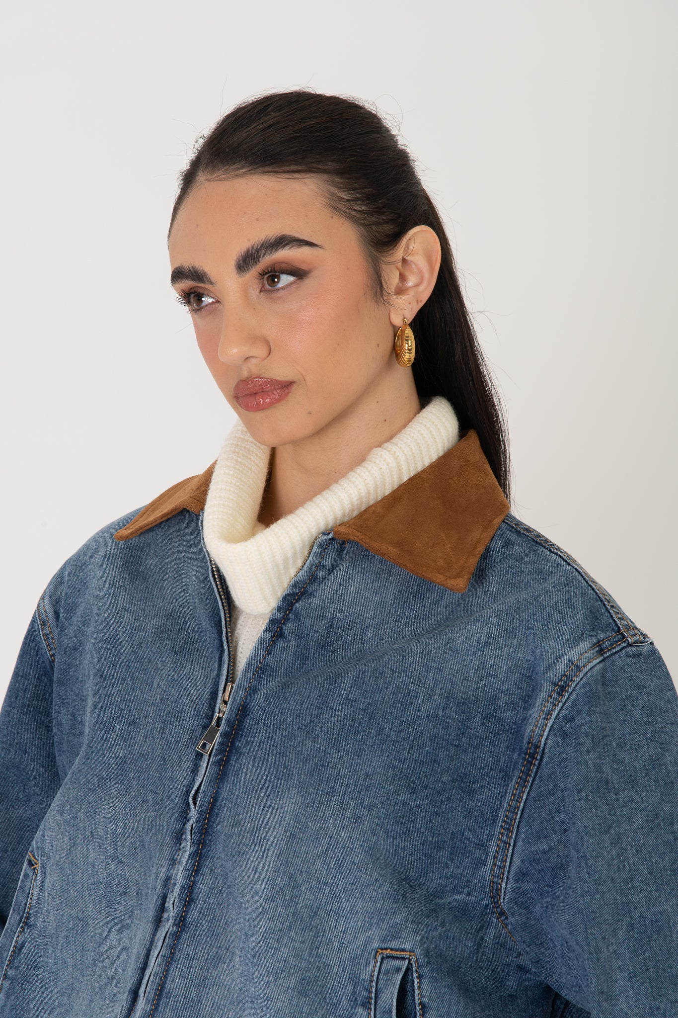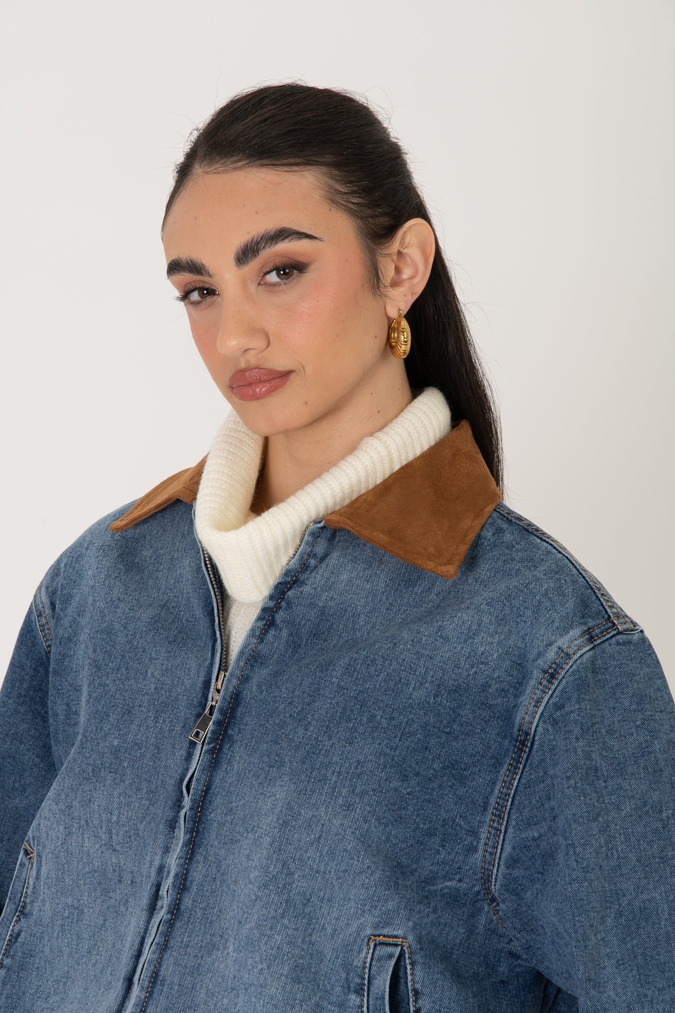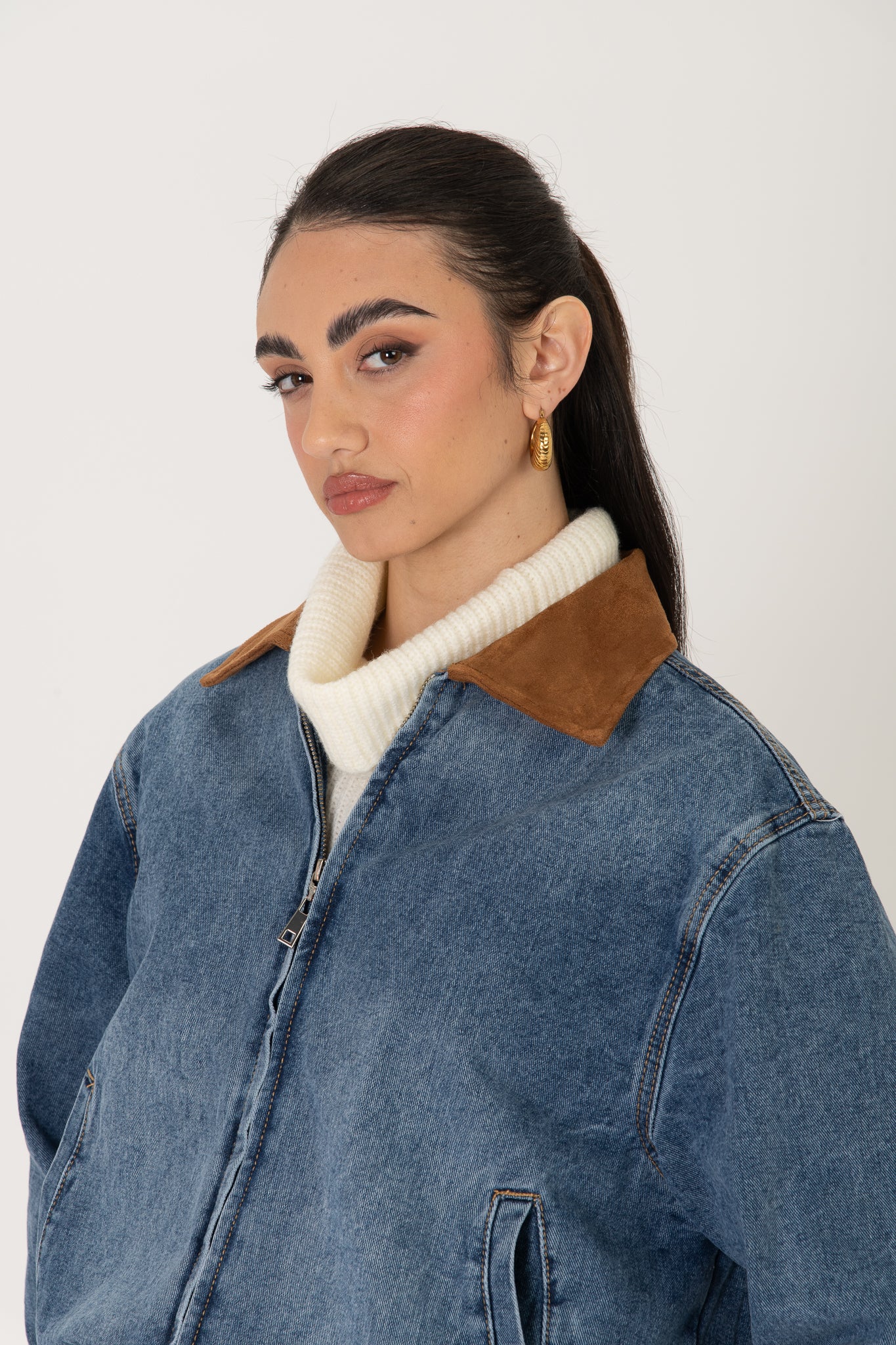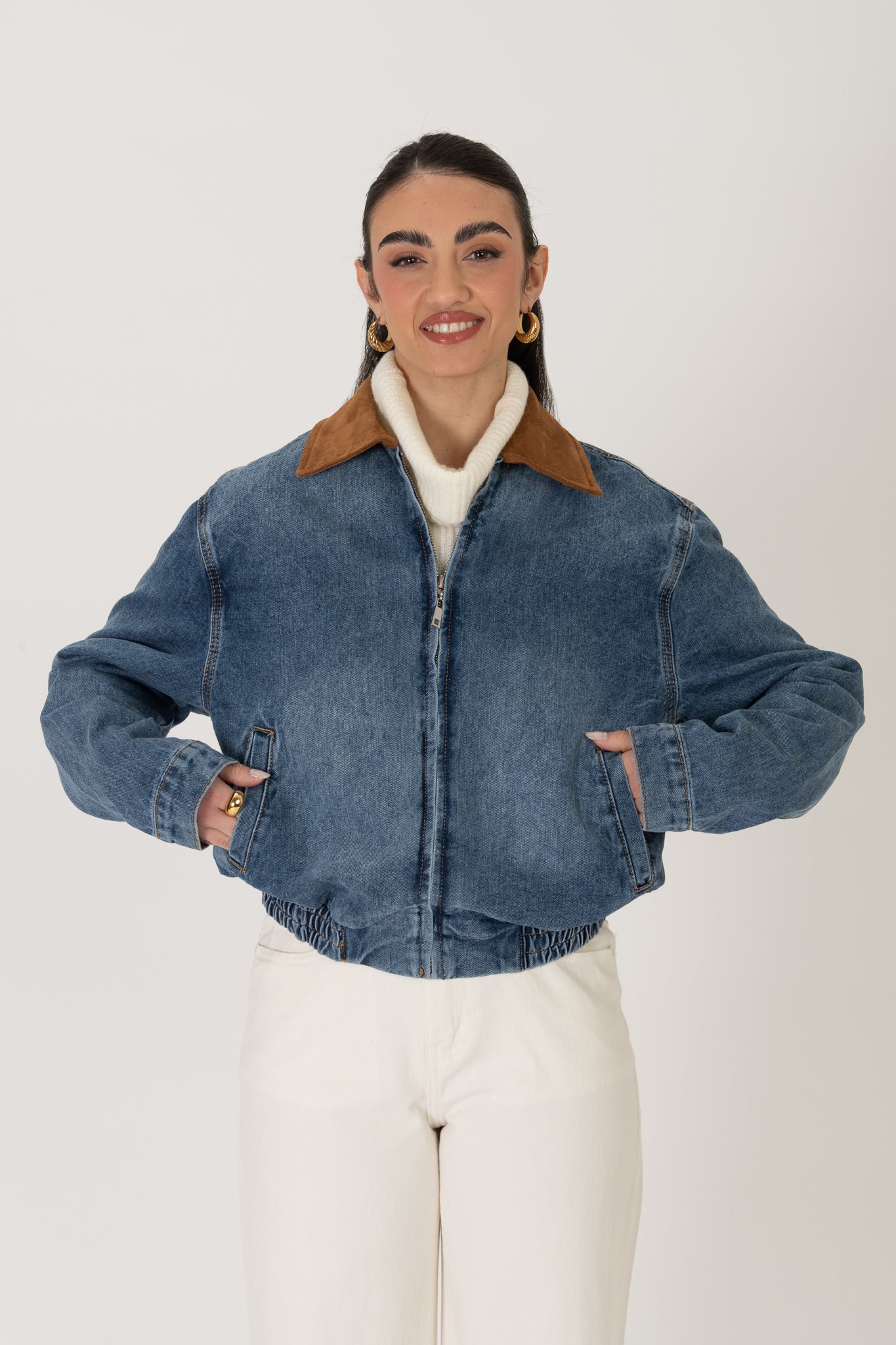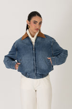 Bomber in denim ‘COLLO IN CAMOSCIO’
