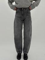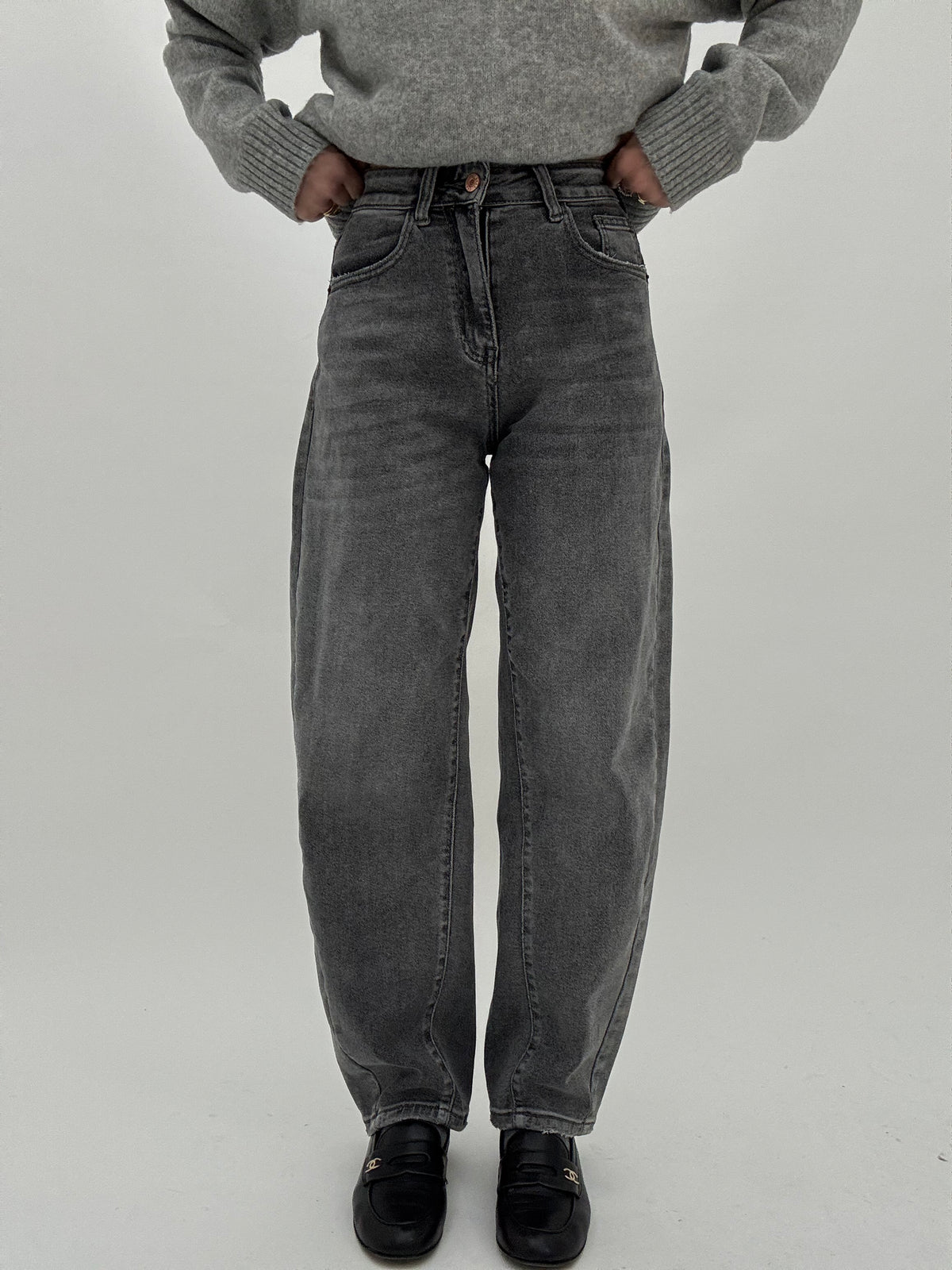 Jeans vita alta poco elasticizzato, gamba larga, effetto ballon chiusura con bottone e zip, tasche vere,con dettaglio cucitura sul davanti ,per un effetto più morbido acquistare una taglia in più.