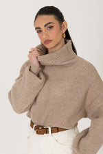 Maglione taglia unica, lunghezza leggermente crop ,collo alto, elasticizzato.
