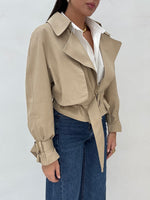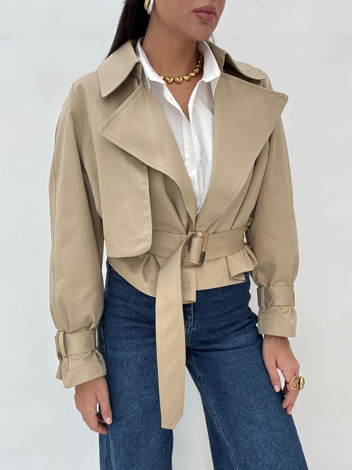 Prezzo unitario perRobi è alta 1.63, solitamente indossa taglia XS, il trench è taglia unica, foderato internamente, cintura inclusa, lunghezza leggermente crop, veste fino a taglia L.