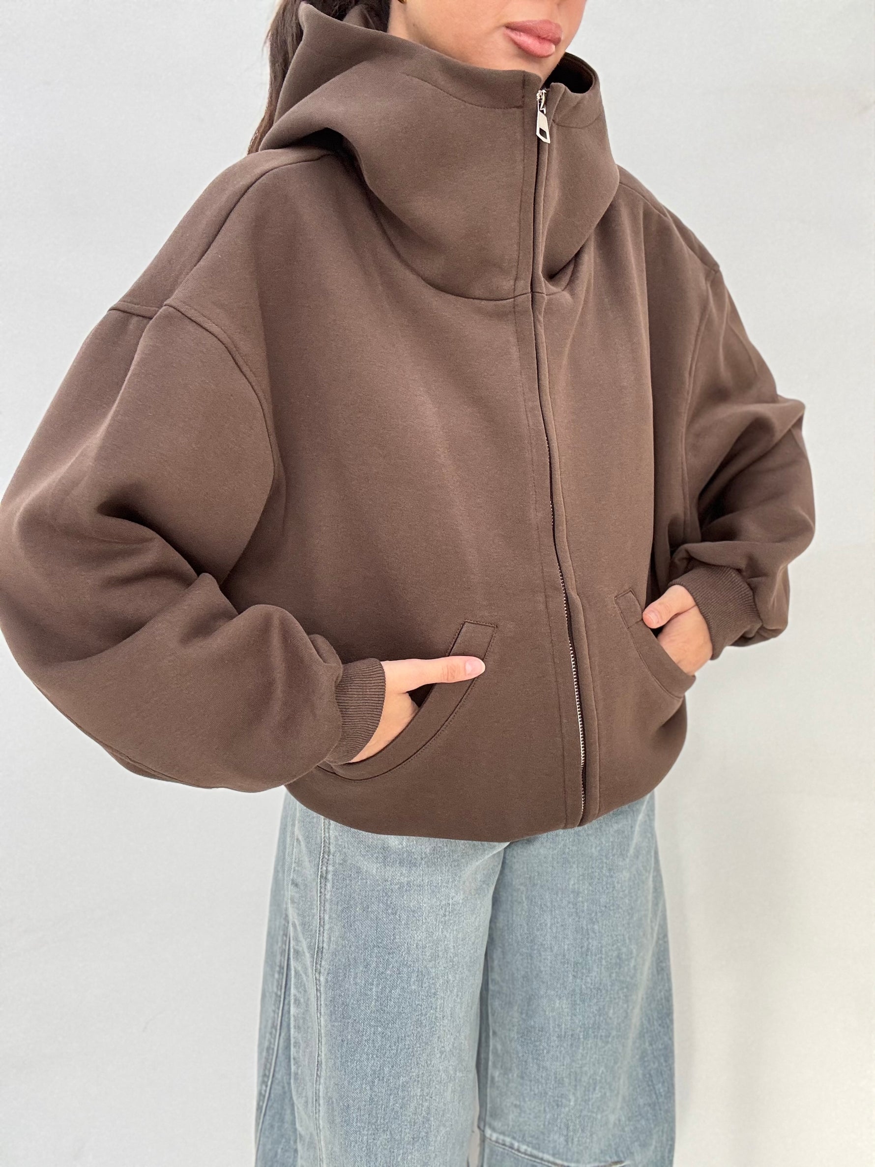 Felpa ‘ZIP COLLO ALTO’ 30%COTONE Cacao