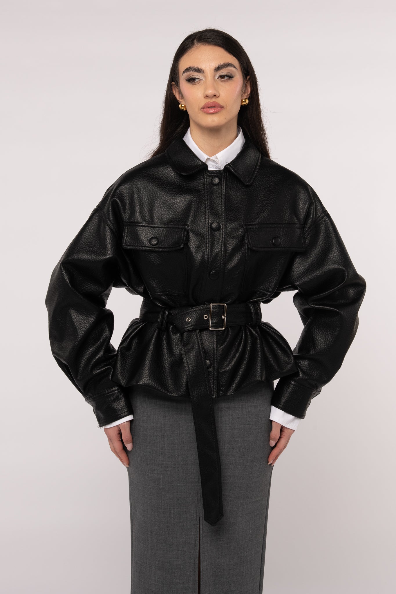 Giacca ‘ECO-PELLE MARTELLATA’ Nera